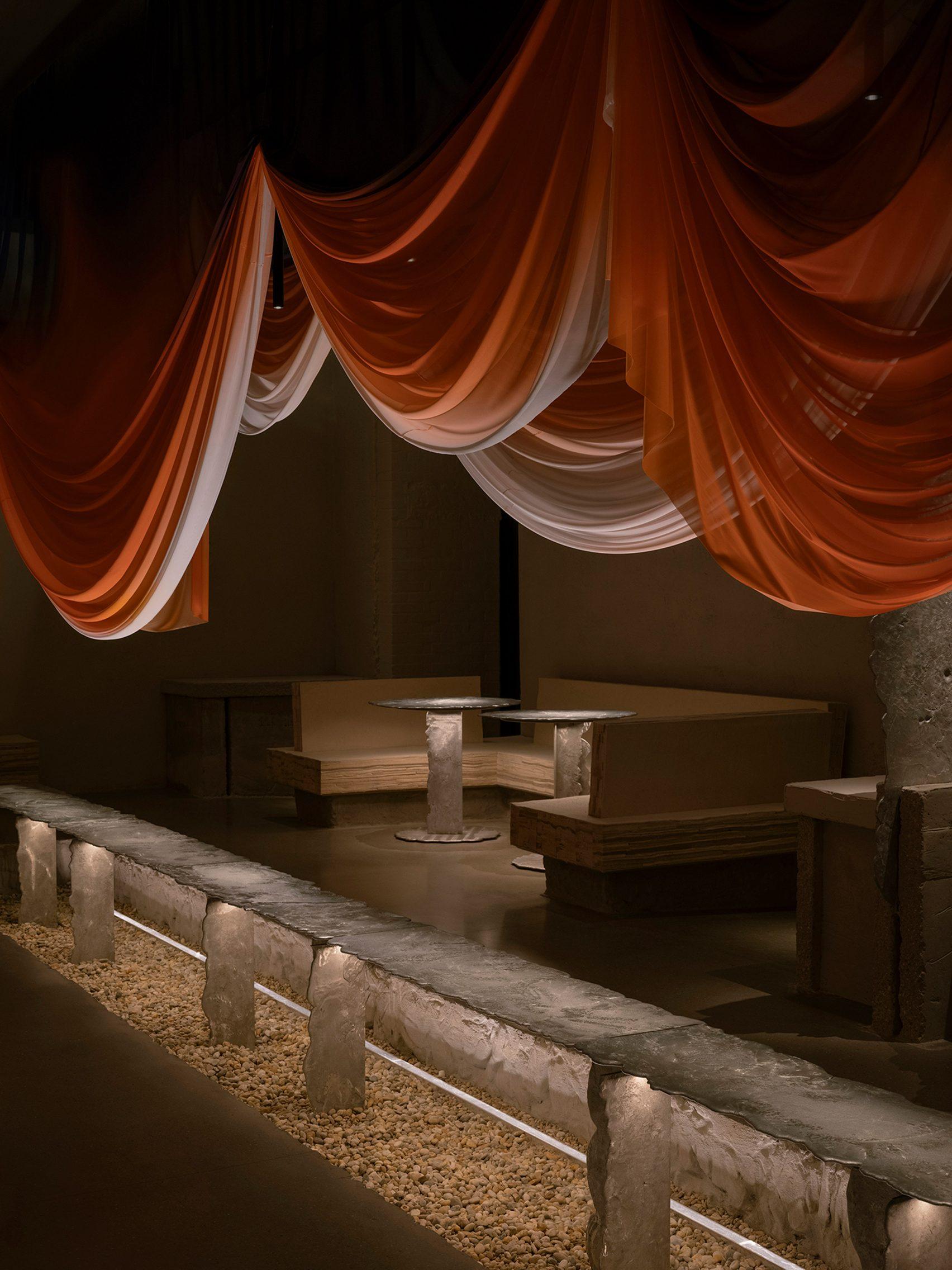 Владельцы ресторана хотели создать динамичное пространство, которое признает прошлое и учитывает местную культуру и контекст, одновременно поддерживая экспериментальный подход к гостеприимству.