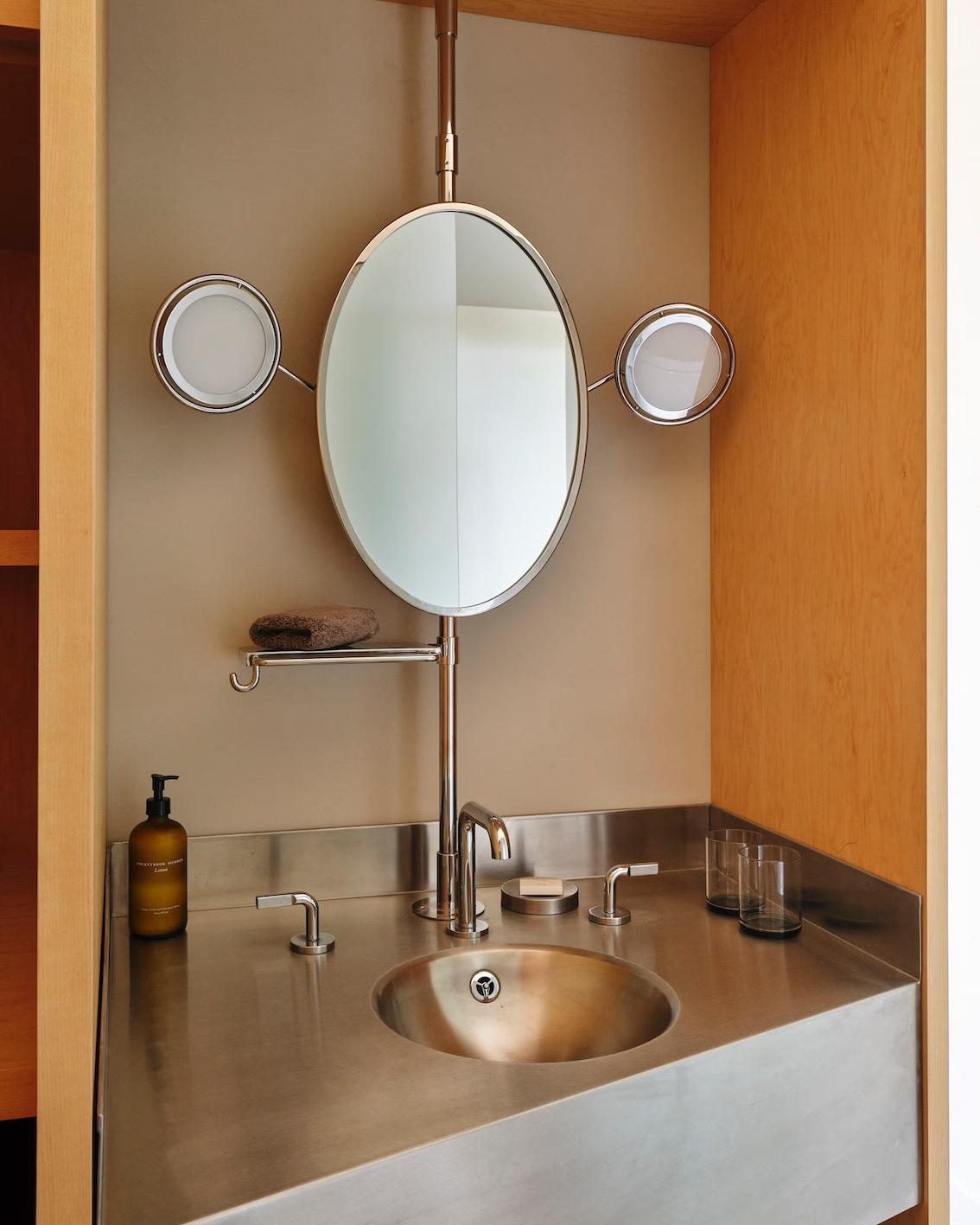 Эти «гибриды» вдохновлены парижской квартирой Ле Корбюзье и стилистикой стимпанка. «С помощью этого решения мы показали, что такое отель: предельное, переходное пространство», — говорит Чарлап Хайман.