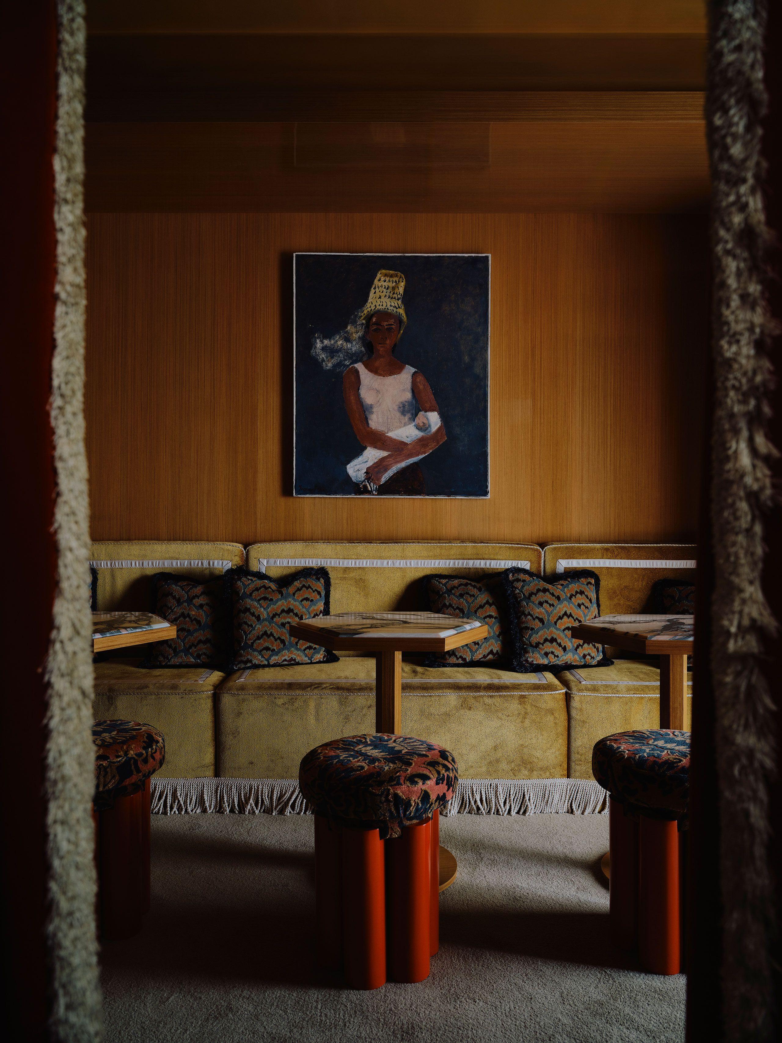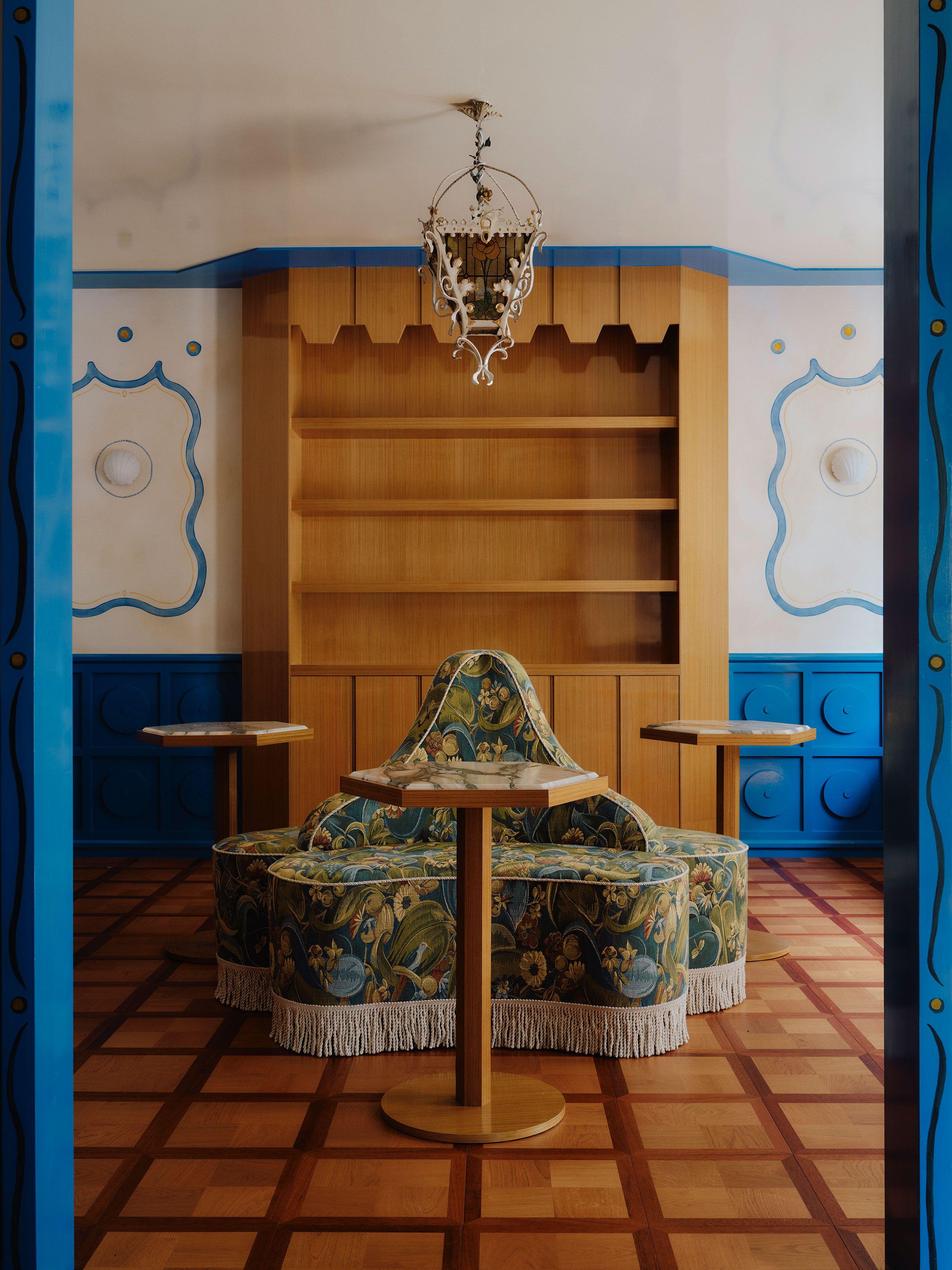 По мере движения вглубь палитра теплеет и насыщается: гостиная и десертный бар купаются в терракотовых, бархатно-красных и золотых тонах, навевающих образы уютных парижских салонов XVIII века.