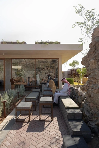 Скала стала главным действующим лицом нового проекта Movs Studio. Чтобы организовать пространство кафе Peacock Ha'il, часть породы пришлось аккуратно срезать. На освободившемся месте сделали небольшой внутренний двор с деревьями. Работы велись так, чтобы сохранить естественный характер камня и при этом соблюсти все строительные нормы.