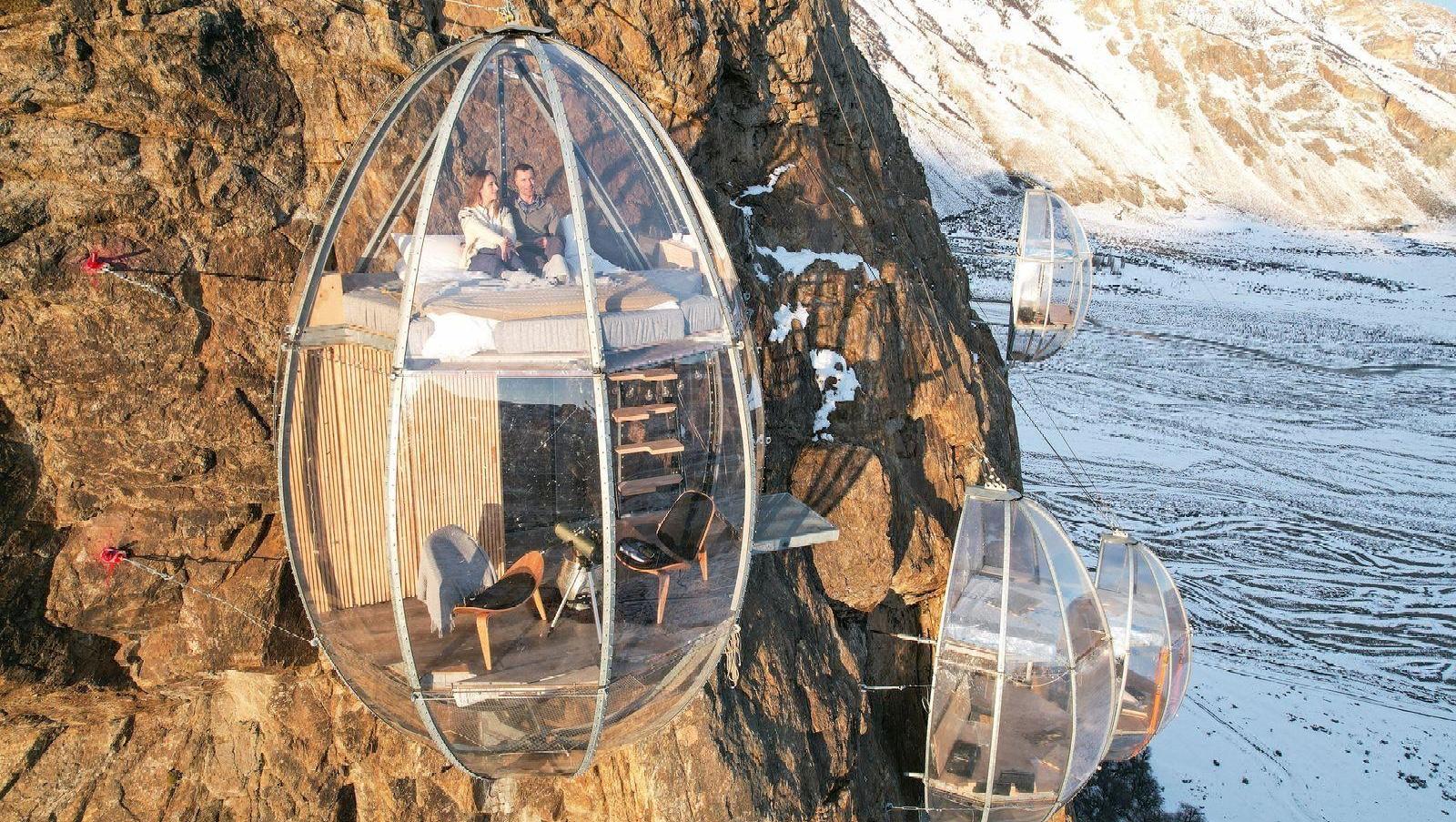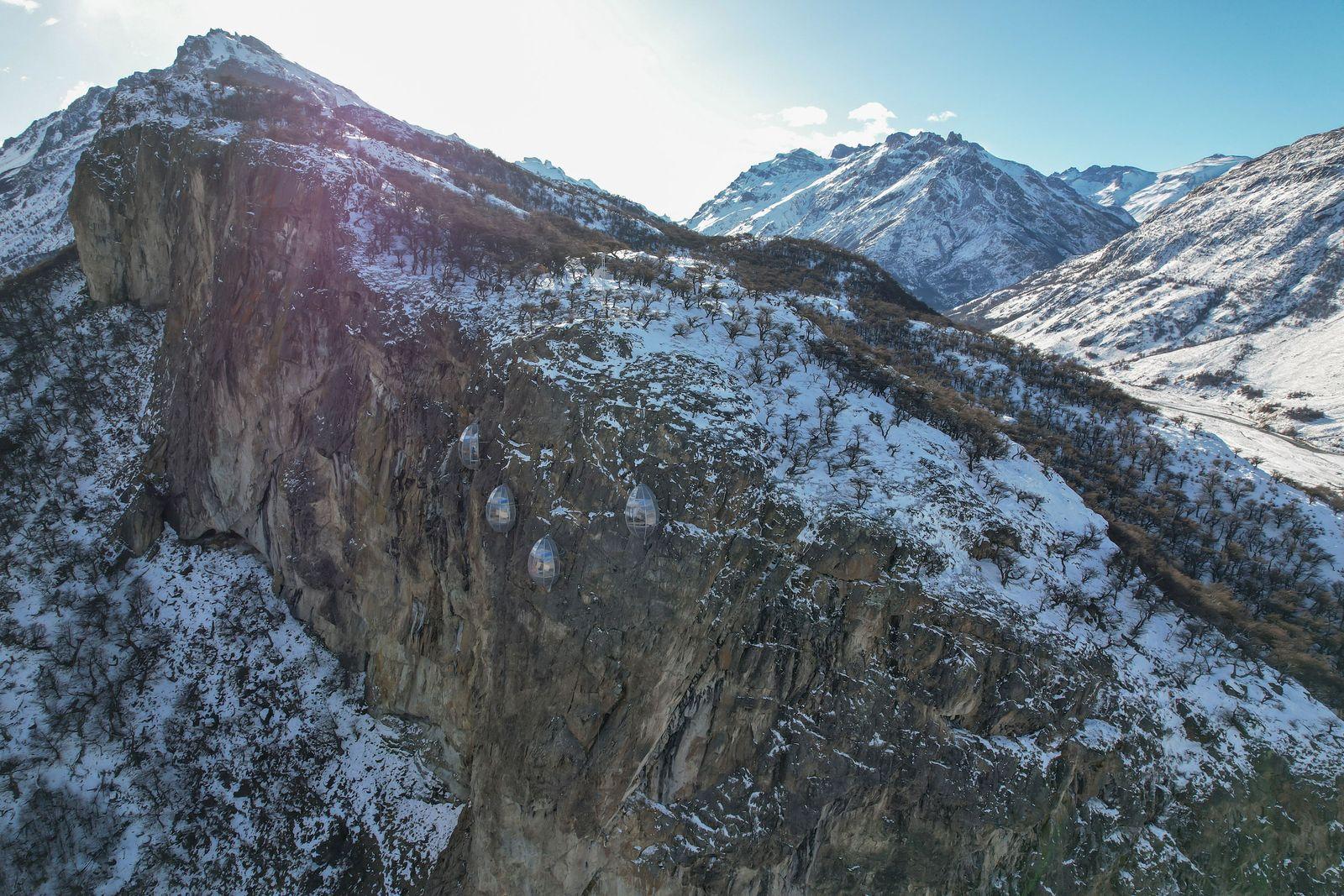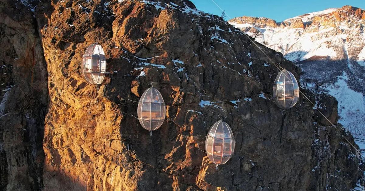 В Национальном парке Лос-Гласиарес, на границе Аргентины и Чили, расположен отель Ovo Patagonia. В нем можно получить по-настоящему необычные впечатления от отдыха: четыре прозрачные капсулы прикреплены прямо к отвесной скале на высоте 270 м над землей.