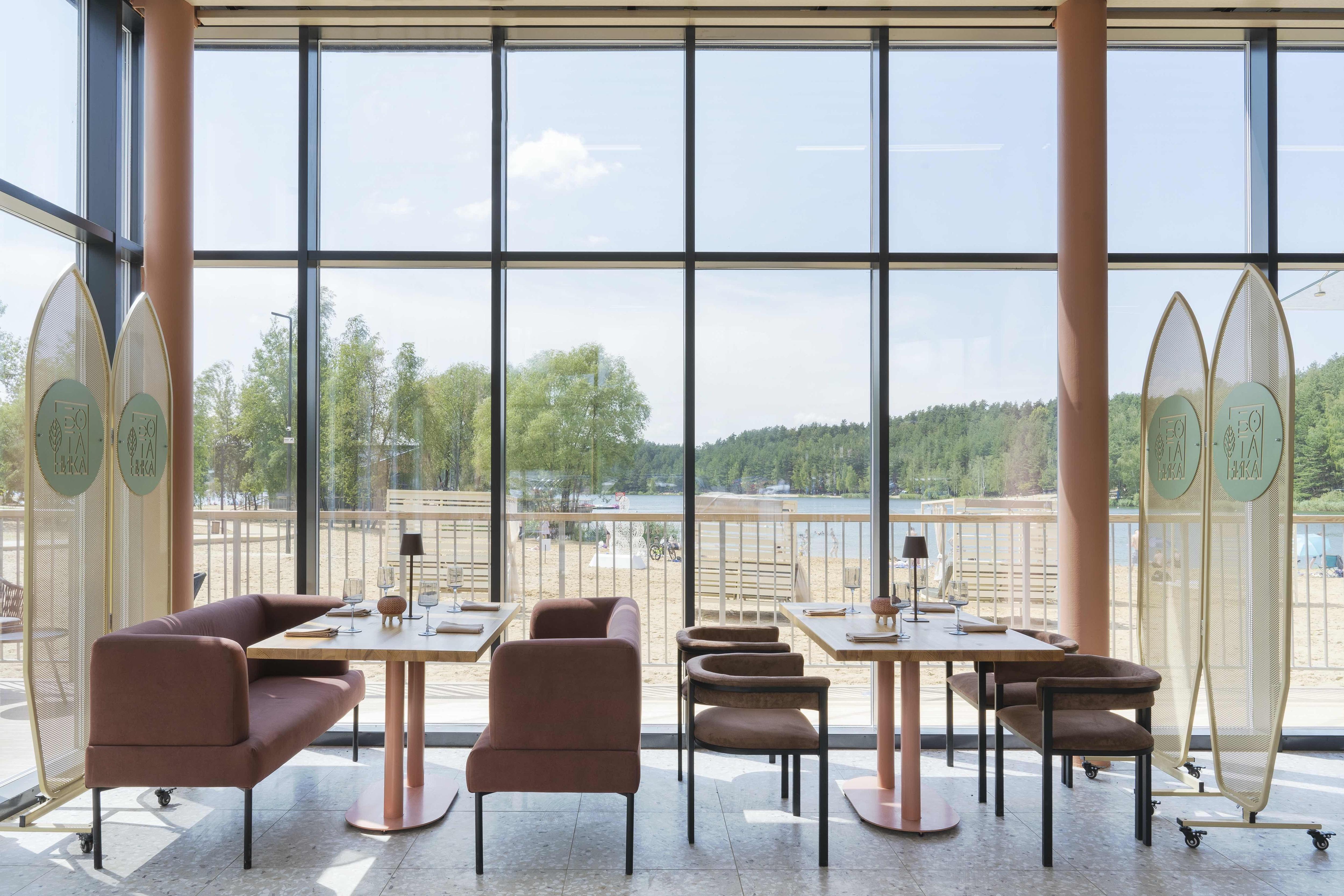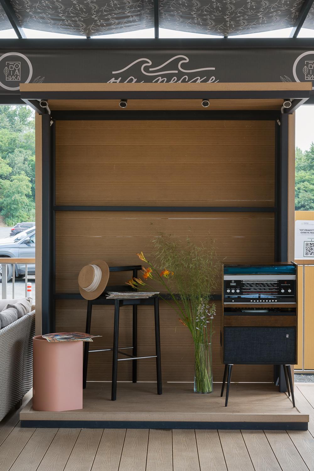 Этот ресторан на пляже получил имя «Ботаника на песке». Проект вдохновлен эстетикой 1960–70-х годов — легкостью, солнцем, свободой. Задача была непростая — сохранить узнаваемый облик, но вместе с тем сделать что-то новое: по замыслу Евгении, у каждого ресторана должен быть свой стиль.