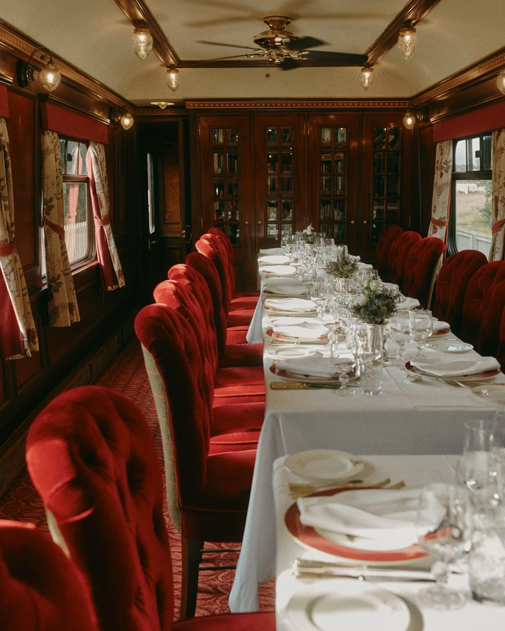 Люксовый поезд Royal Scotsman ходит по живописным просторам Шотландии. К его сорокалетнему юбилею компания Belmond добавила два сьюта с интерьерами от французского архитектора Тристана Ауэра. Дизайн сьютов отсылает нас к древней кельтской культуре. Высокий уровень интерьеров подчеркивает обивка из твида и тартана, а также маркетри из красного дерева. В каждом номере есть двуспальная кровать, туалетный столик и обеденная группа из шотландской лиственницы. Но самое интересное — это спа пространство от Dior!
