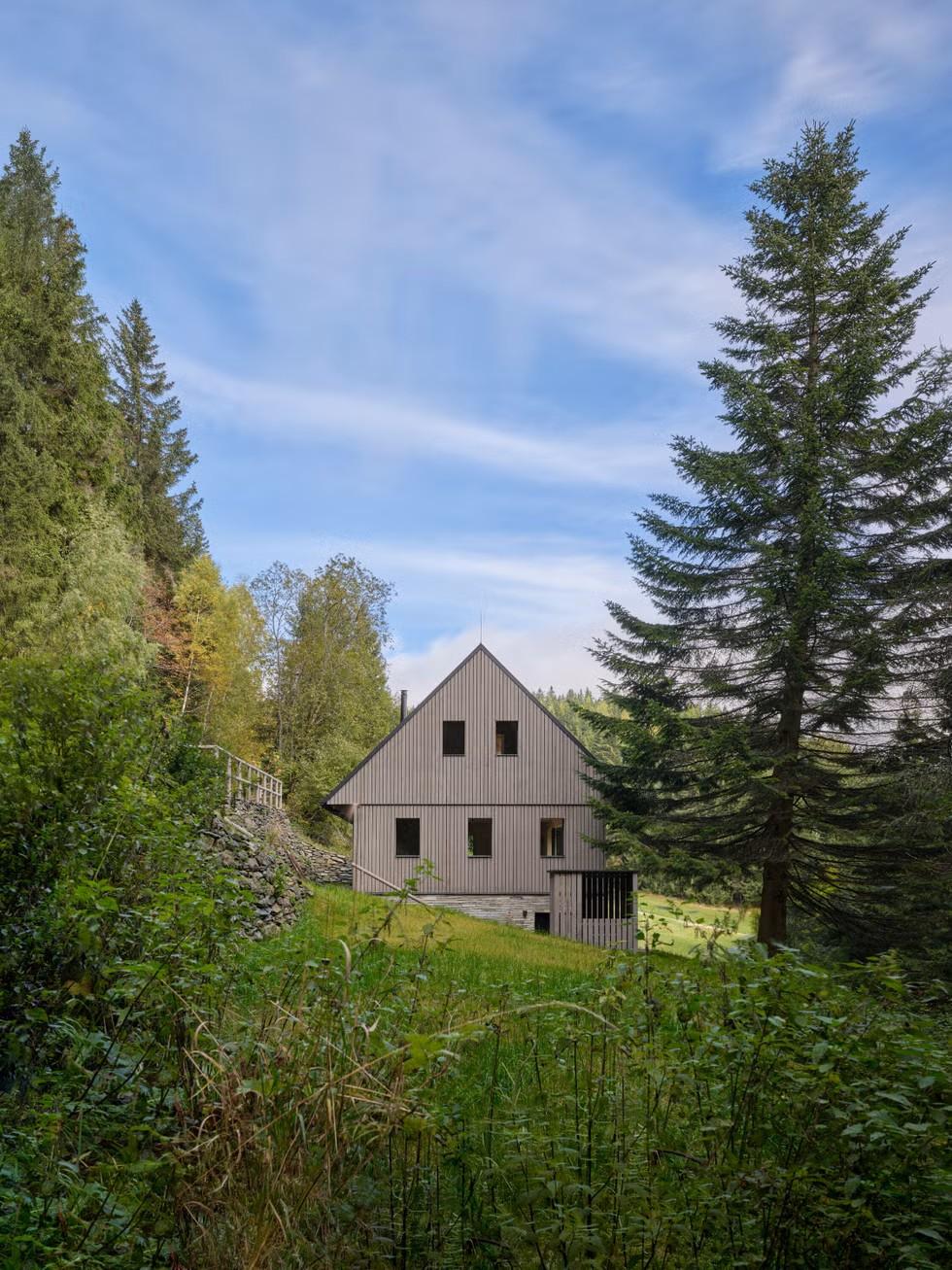Правила в природном парке гор Крконоше жесткие: форма дома, угол ската крыши, материалы — все должно соответствовать традиционным постройкам. Архитекторы из edit! architects не могли это изменить, поэтому сосредоточились на том, что обычно в таких домах страдает — на интерьере. Внутри они сделали открытую планировку, добавили света и воздуха.