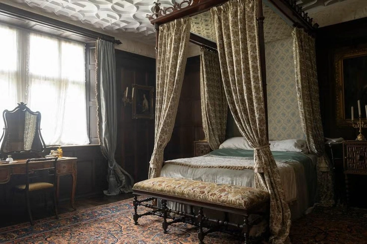 Сами интерьеры усадьбы почти не пришлось менять. Темная деревянная резьба на стенах и приглушенные, даже мрачноватые тона создали нужную атмосферу — более «брутальную» и «взрослую» по сравнению со светлыми и пастельными гостиными других аристократических домов в сериале. Этот контраст помог визуально отделить личное убежище Бенедикта от остального яркого и нарядного мира «Бриджертонов».