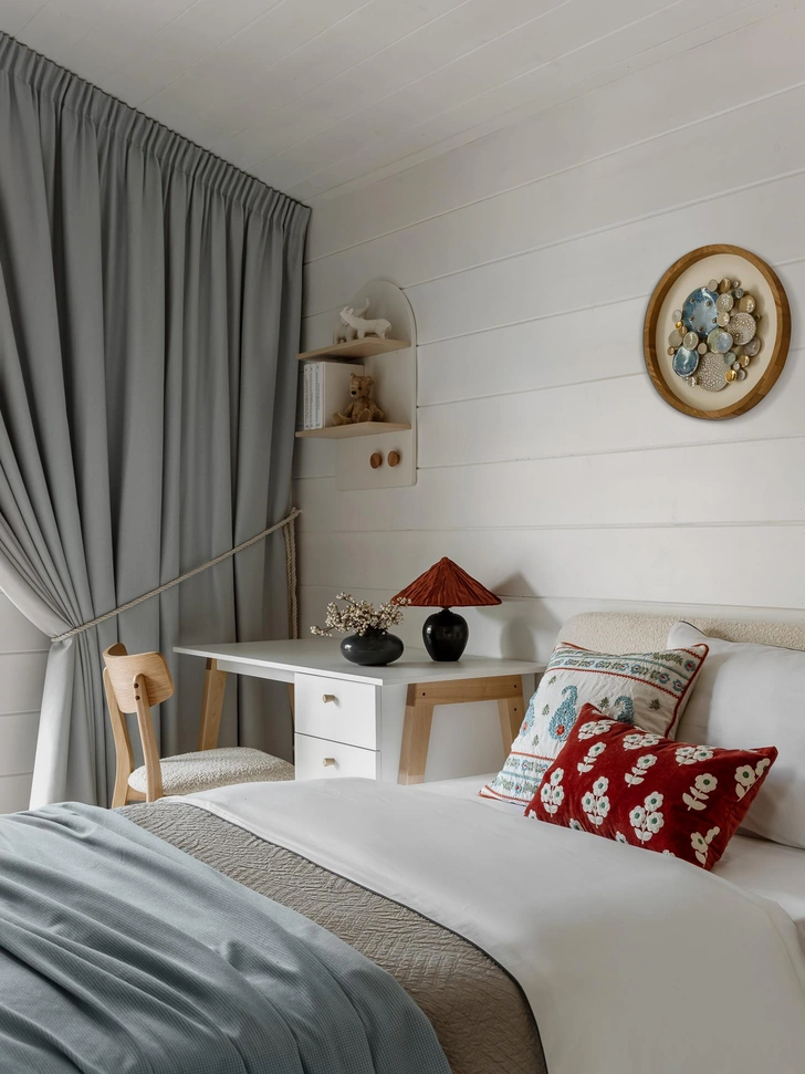 Детская. Светильник, Полина Артамонова. Кровать, Divan.ru. Шторы, Елена Кулагина. Декор, La Redoute.