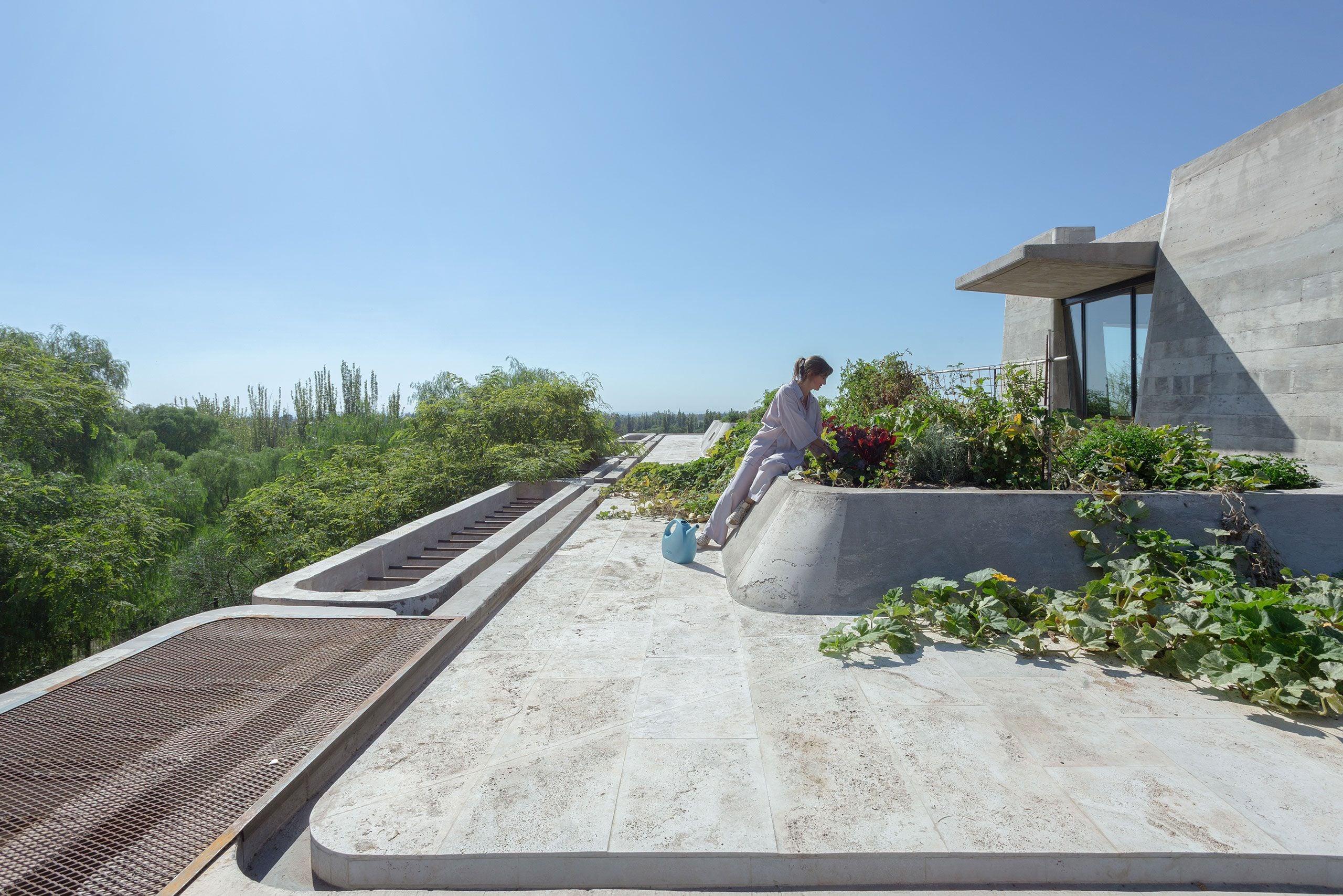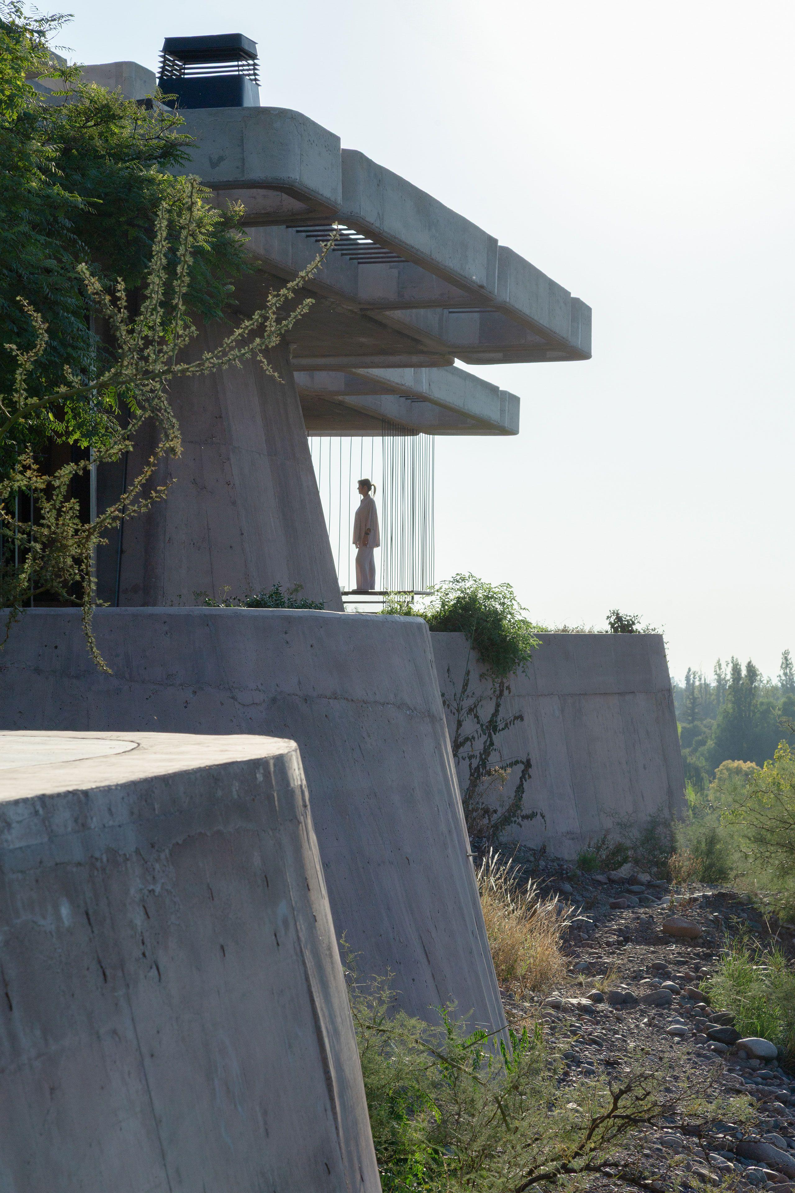 Участок, на котором стоит дом, — это сложный горный склон с панорамным видом на пустынные предгорья Анд и зеленый оазис внизу. Первым и главным правилом для архитекторов стало минимальное вторжение. Они спроектировали дом так, чтобы не пришлось вырубать ни одного дерева.