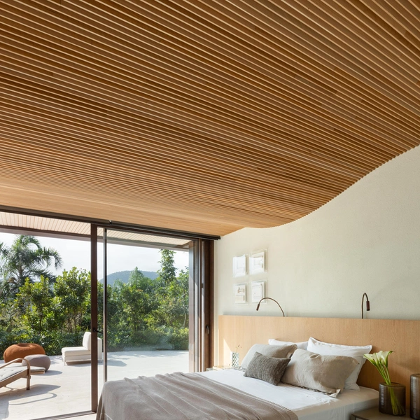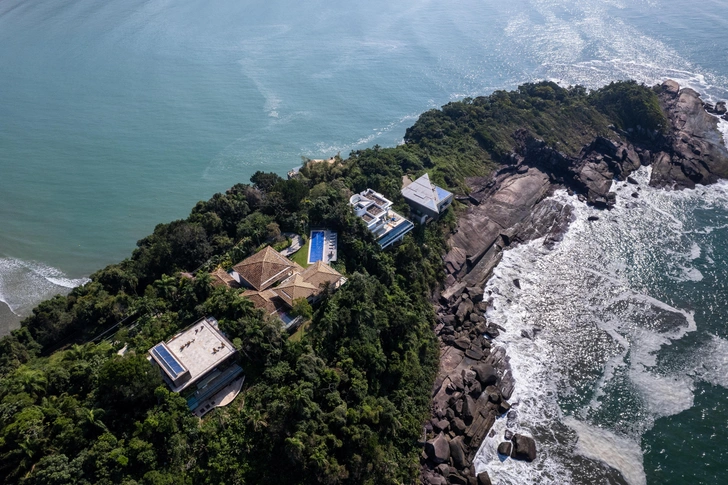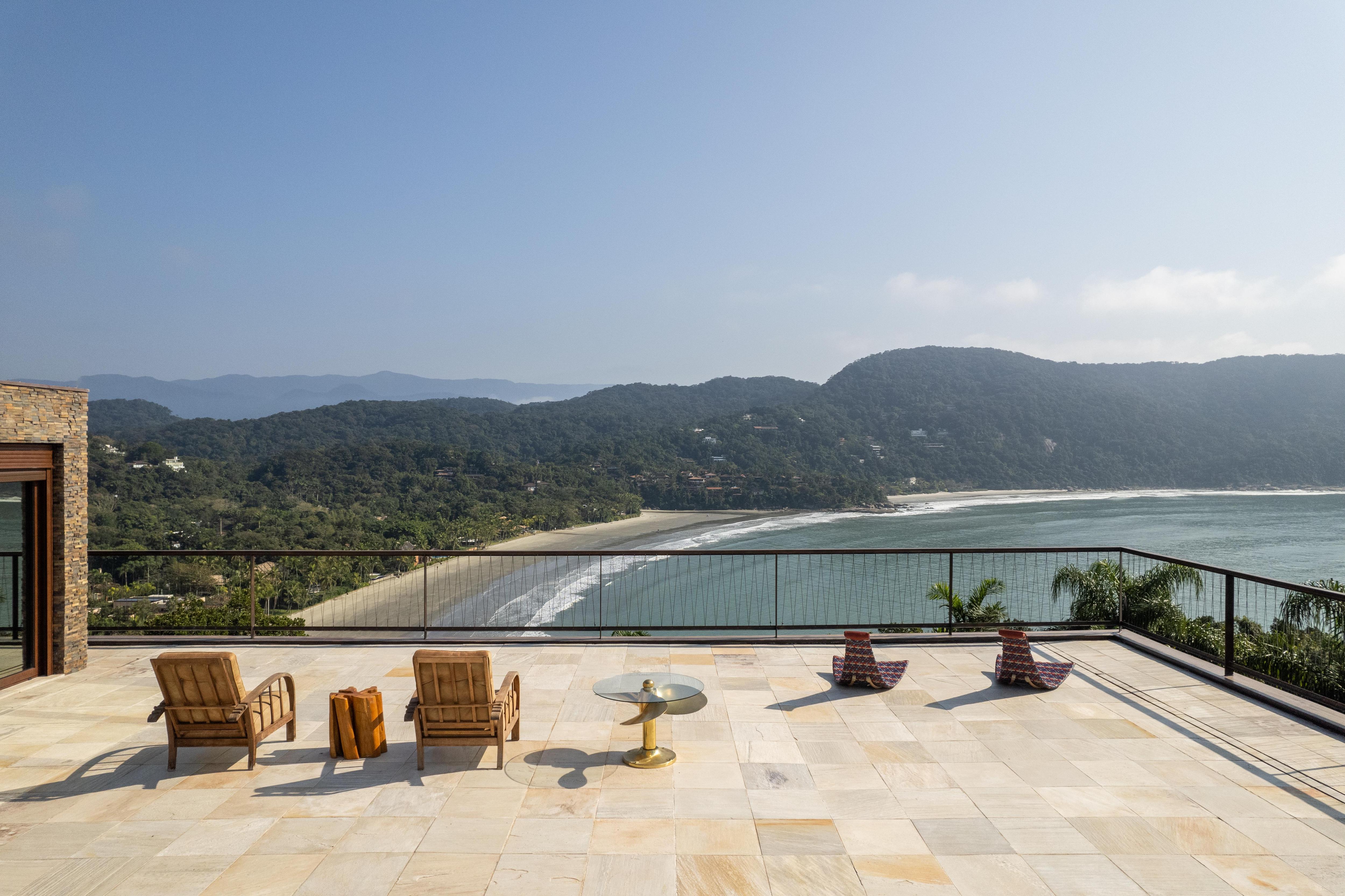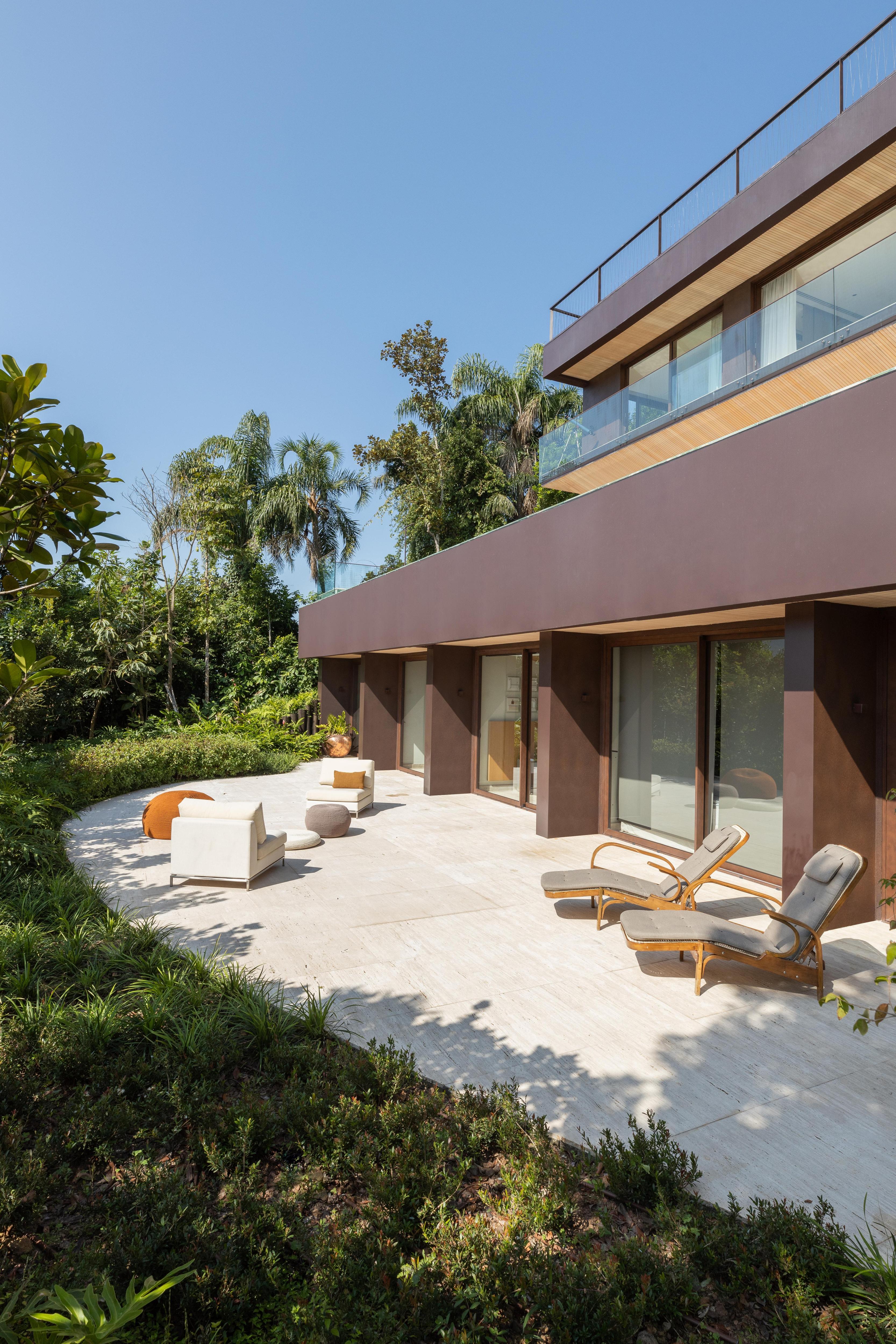 Brisa House стоит на склоне полуострова в Бразилии, поэтому архитекторы FCstudio организовали пространство по вертикали. Дом встроен в рельеф так, что с каждого уровня открывается свой ракурс на океан и лес.