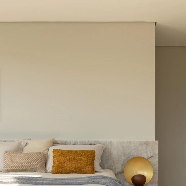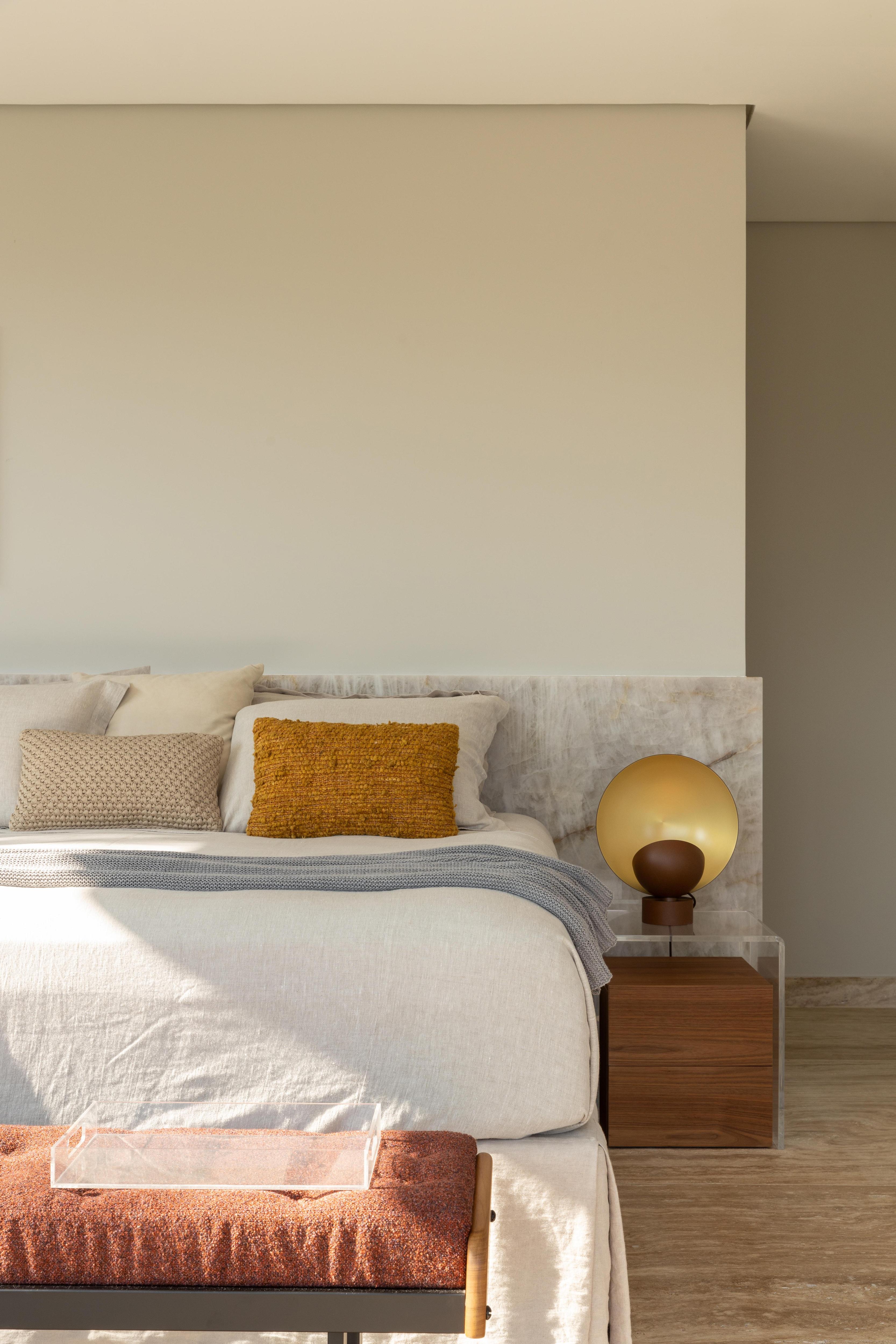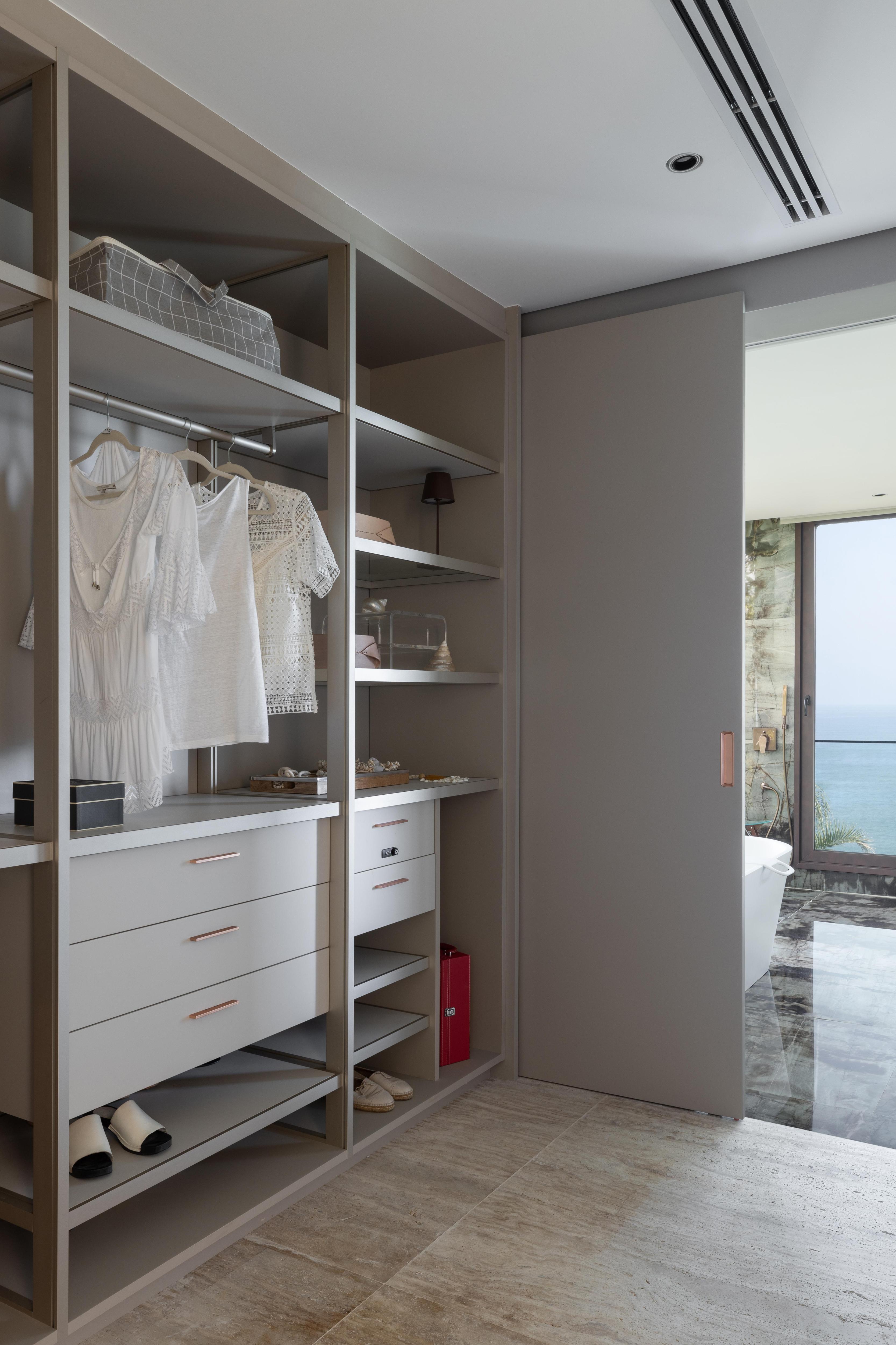 В хозяйской спальне все подчинено виду. Кровать стоит так, чтобы просыпаться и сразу видеть океан через огромное окно. Спальня соединена с гардеробной, откуда тоже видна вода. У пары есть собственная гостиная с диванами и обеденным столом — чтобы можно было вообще не спускаться на первый этаж, если не хочется.