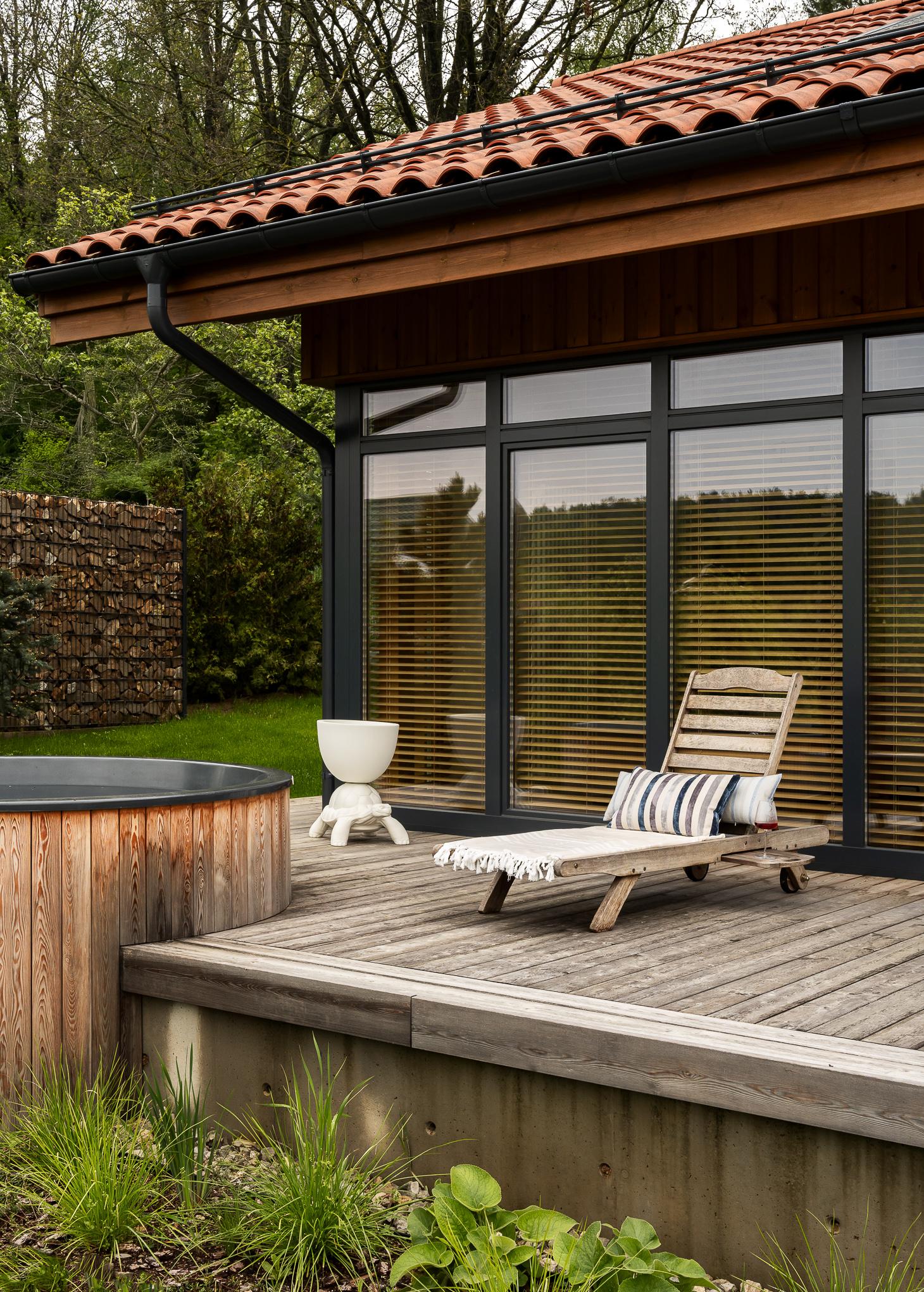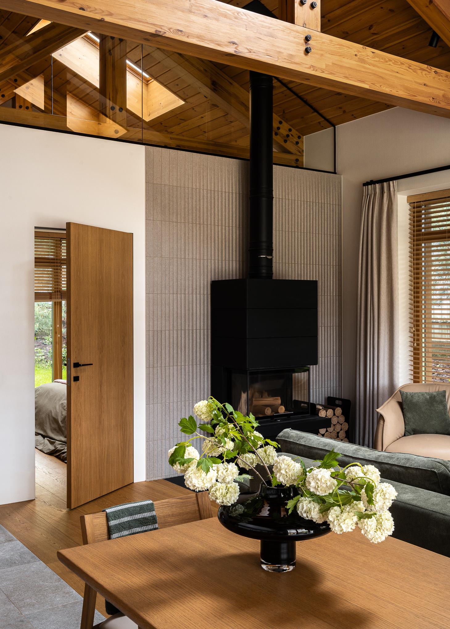 Это второй дом на участке — здесь есть банный комплекс и тренажерный зал, а также гостевая спальня и кухня-гостиная. Задача архитектора Маргариты Павелко состояла в том, чтобы сделать пространство максимально открытым, светлым и воздушным.