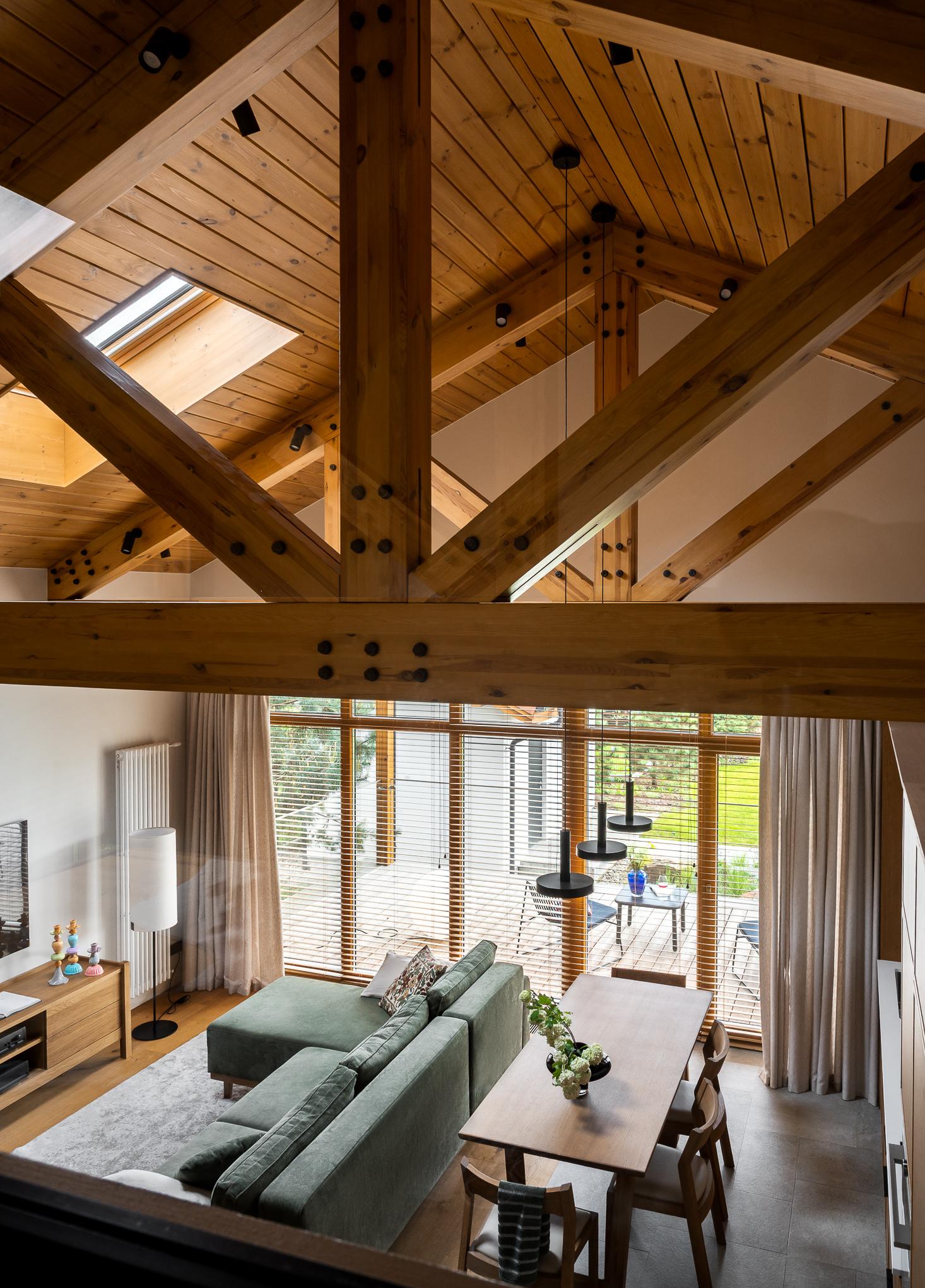 Архитектор старалась не перегружать интерьер декором — не только потому, что заказчики не любят яркие динамичные элементы, но и потому, что это бы отвлекало от прекрасного вида из панорамных окон. Окна здесь не только на стенах, но и на крыше — их вырезали уже во время ремонта: заказчик хотел сделать пространство еще светлее.