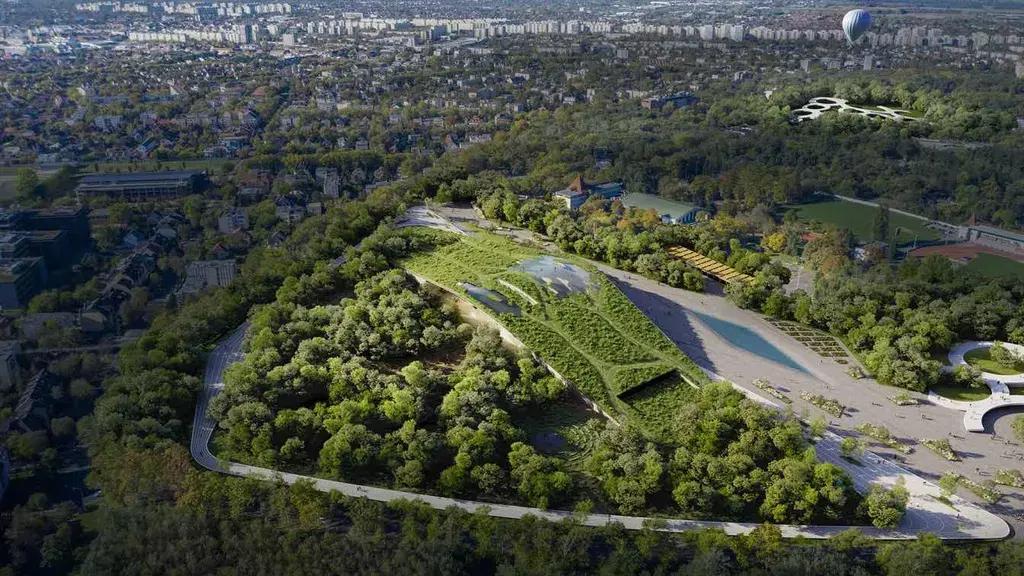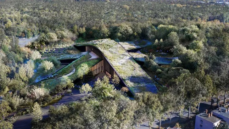 BIG представили проект нового музея в Дебрецене в 2025 году. Здание площадью 23 000 м² — это серия пересекающихся земляных лент, поднимающихся из леса. Крыши озеленены и доступны для прогулок. Они собирают дождевую воду, создают собственный микроклимат и стирают грань между архитектурой и природой.