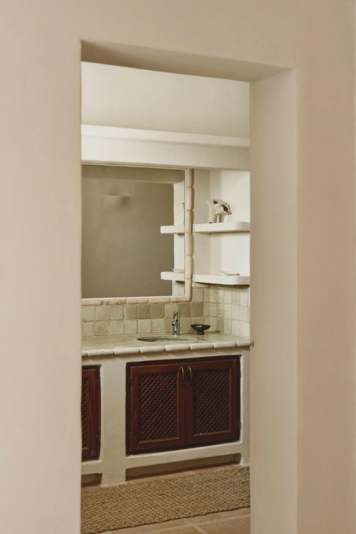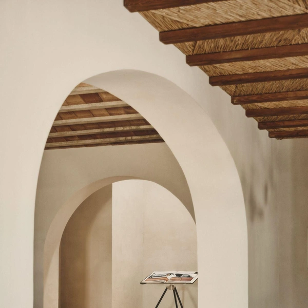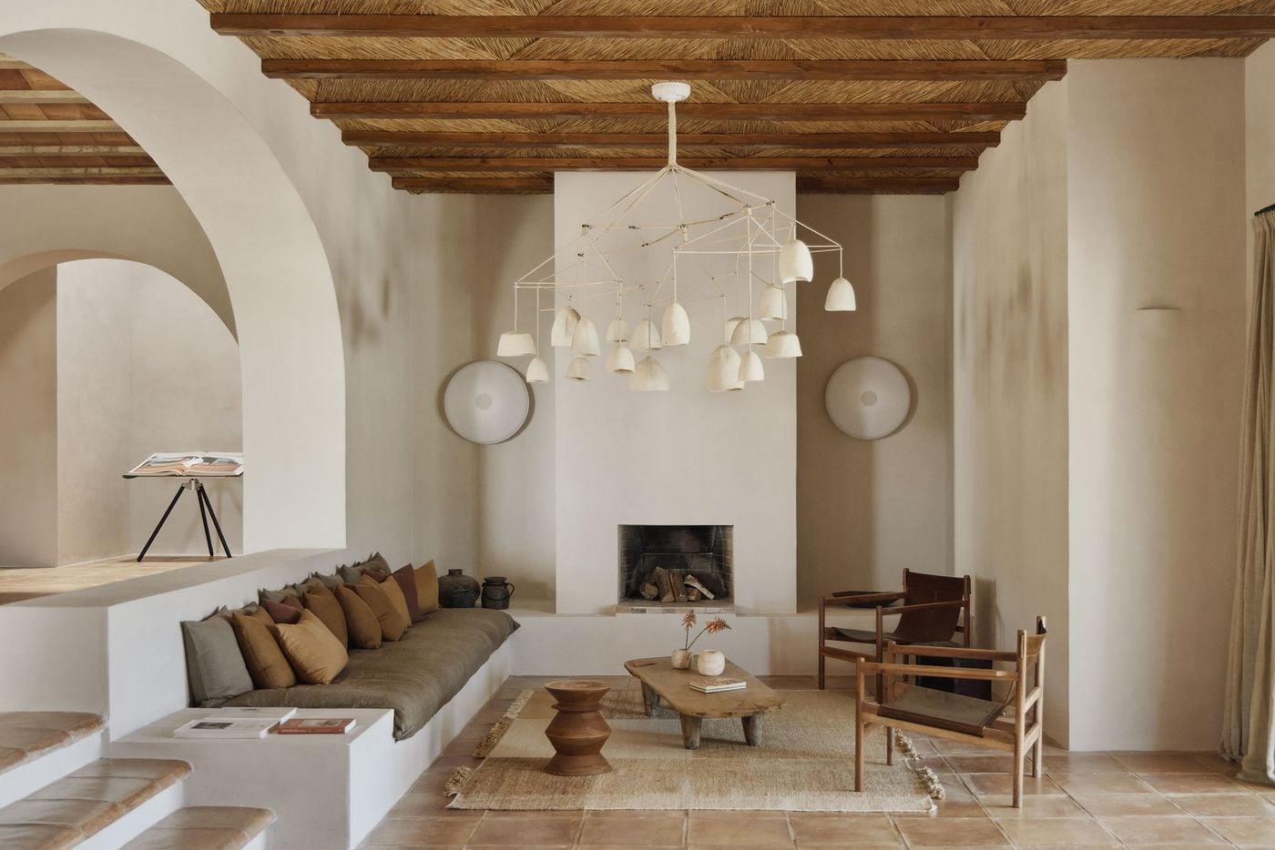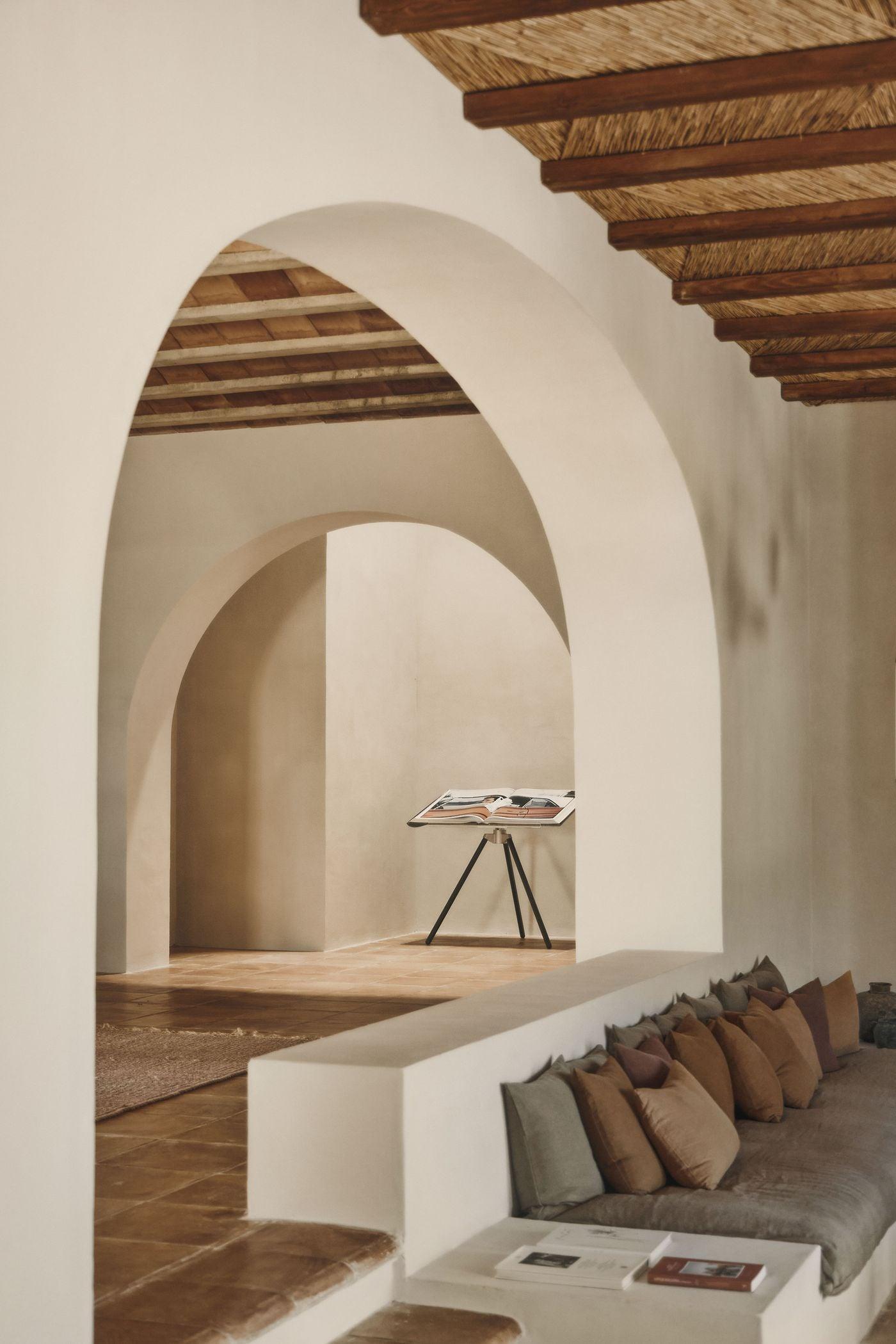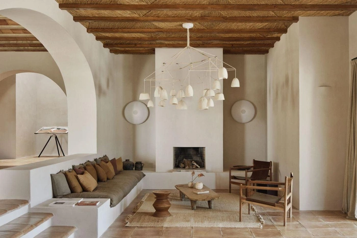 В интерьере использовали традиционные для этого региона материалы, натуральные текстуры и землистые тона. Стены покрыты штукатуркой, полы выложены терракотовой плиткой. Дерево, керамика и лен добавляют в пространство тепла, усиливают связь между интерьером и окружающим ландшафтом. Все это наполняет пространство душой и вместе с тем элегантностью.