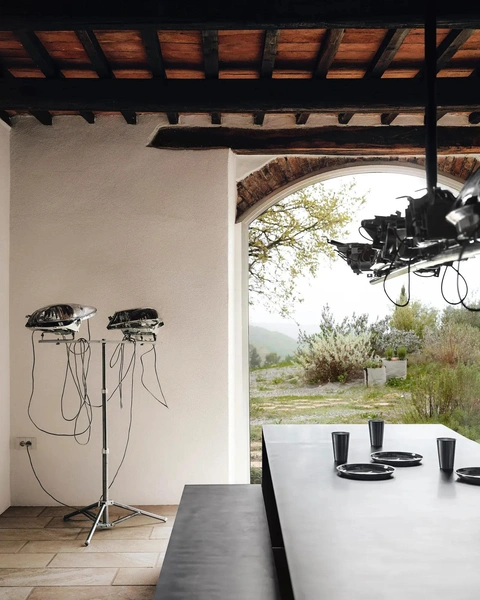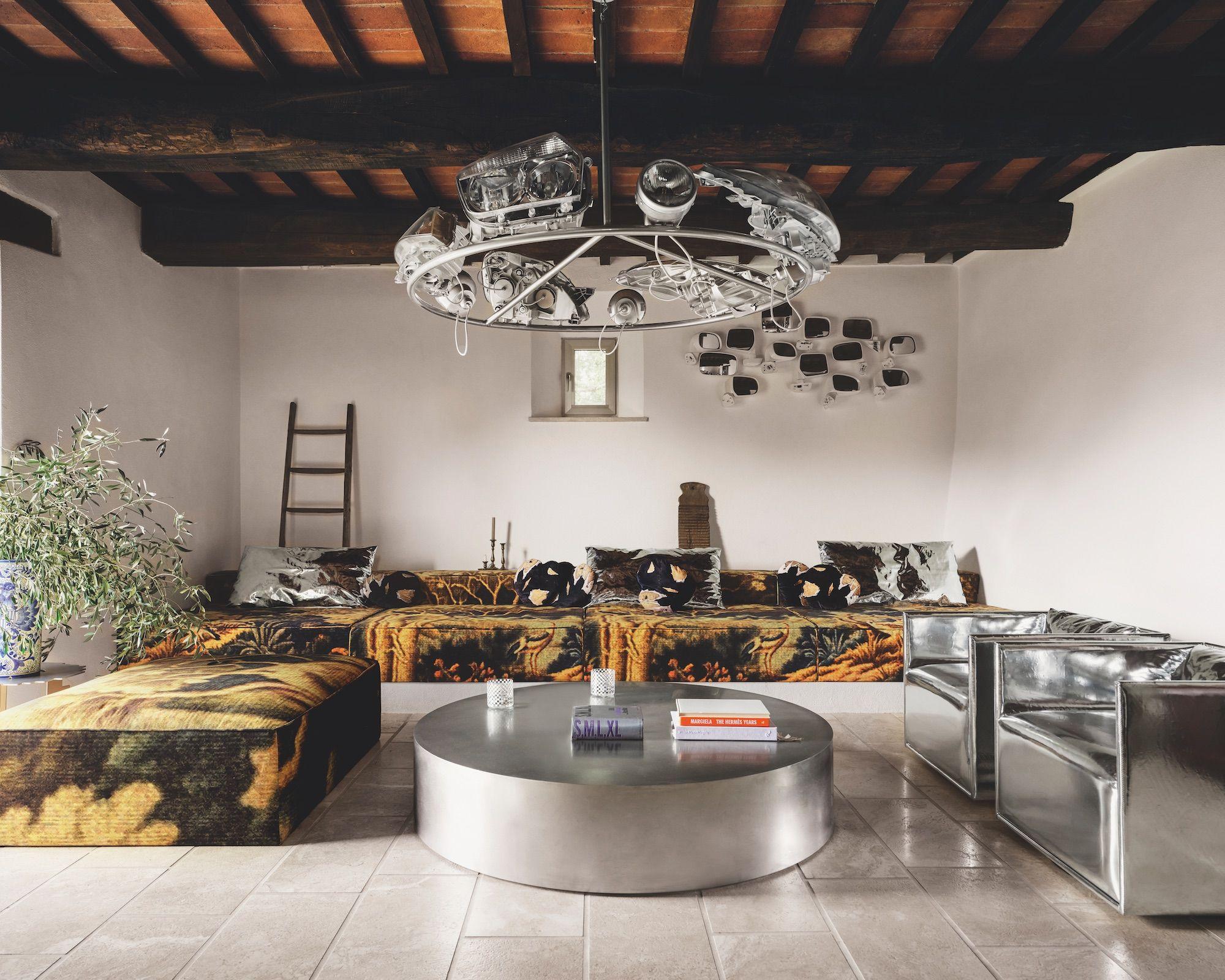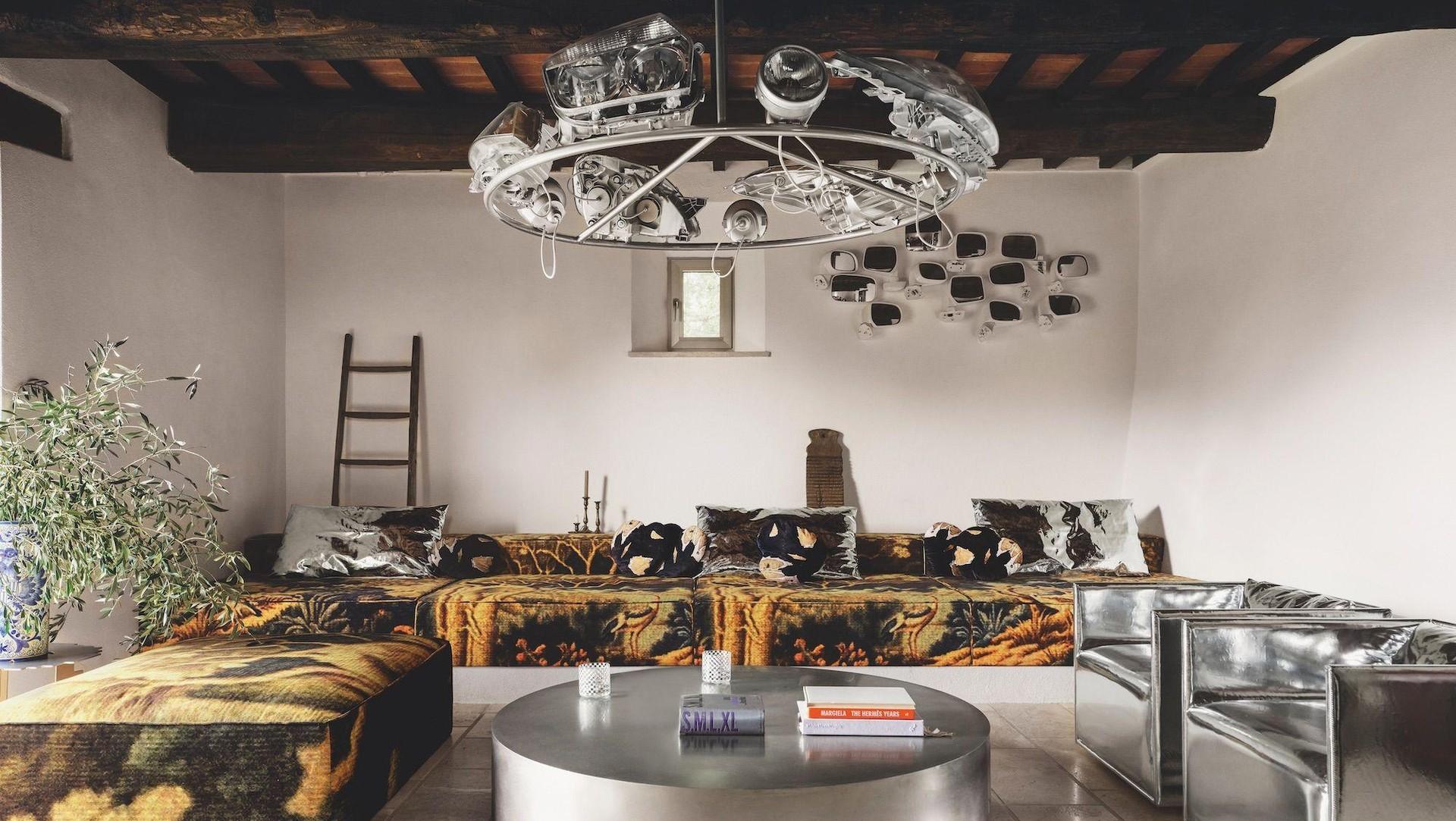 Гарри Нуриев известен эпатажными проектами: от дивана, наполненного обрезками вещей Balenciaga, до стеганых одеял из мужского нижнего белья. В Тоскане он применил свой подход «трансформизма», сохранив оригинальные элементы дома — деревянные балки, полы из травертина и речной гальки — и добавив индустриальные детали. «Мы живем в эпоху бесконечных данных, — объясняет дизайнер, — Все уже исследовано. Вместо того, чтобы пытаться новаторствовать, мы переосмысливаем окружающие нас вещи».