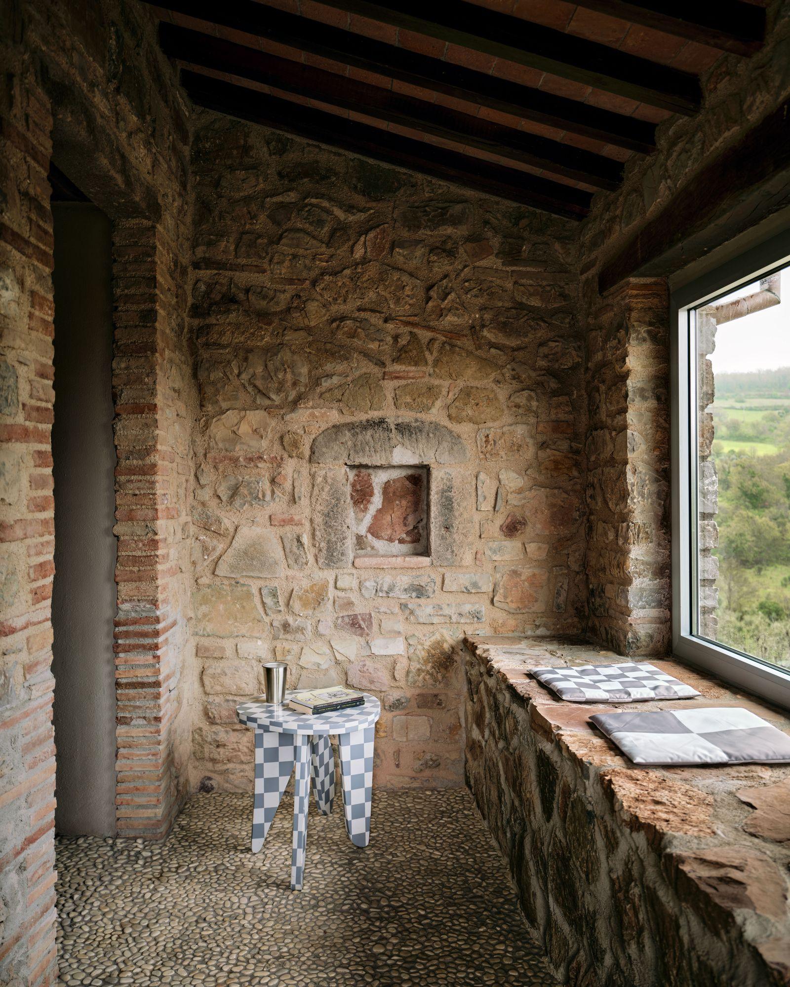 Табурет «Шашки», дизайн Гарри Нуриева, 2020. Полы из гальки выложены местными мастерами.
