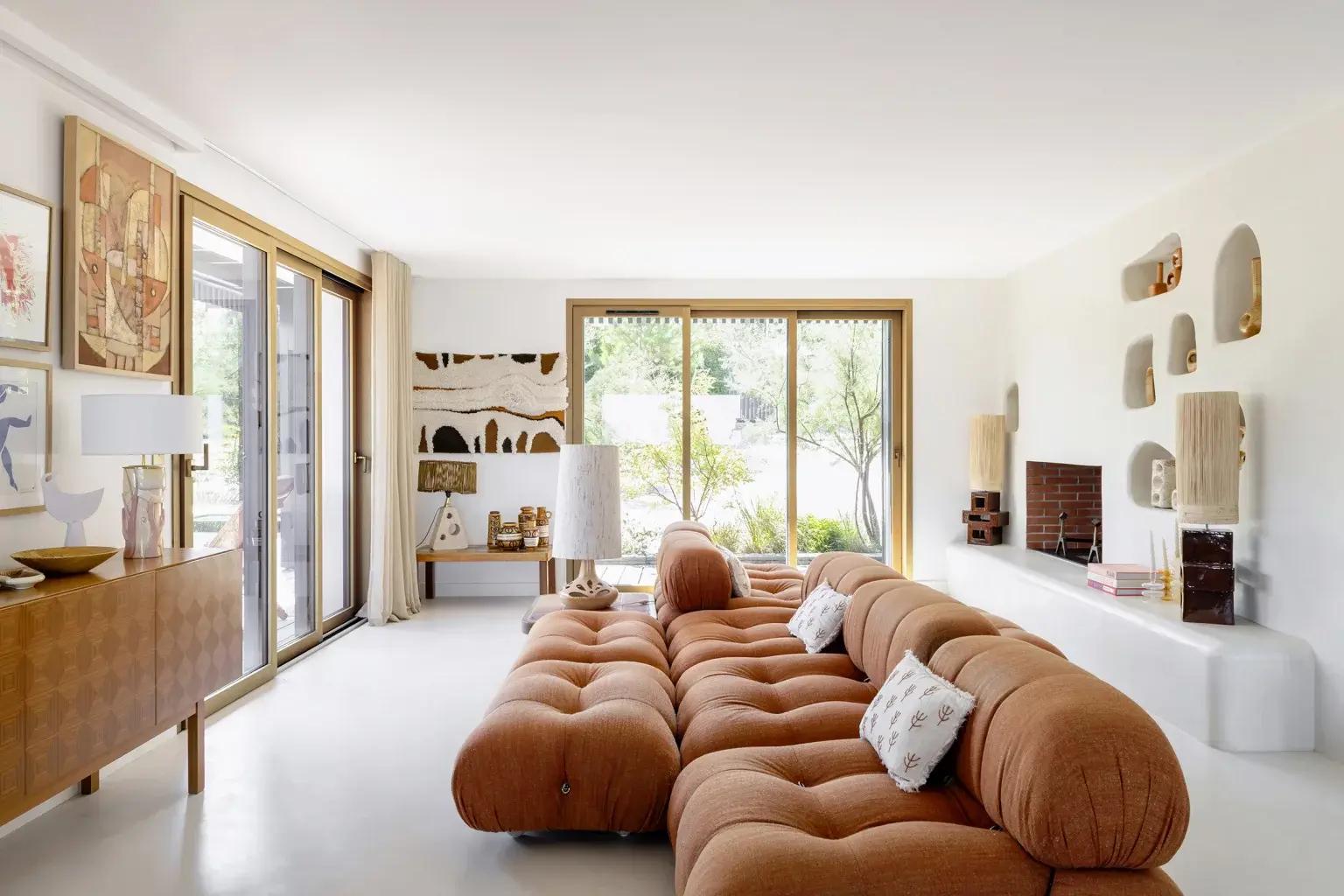 В интерьере сочетаются разные стили, но отчетливее остальных заметна любовь Натали и Филиппа к стилю 1970-х. Книжный шкаф в гостиной, мягкий диван, спроектированный Марио Беллини для B&B Italia, узоры на шторах в спальне и офисе, винтажная керамика — все это напоминает о прошлом.