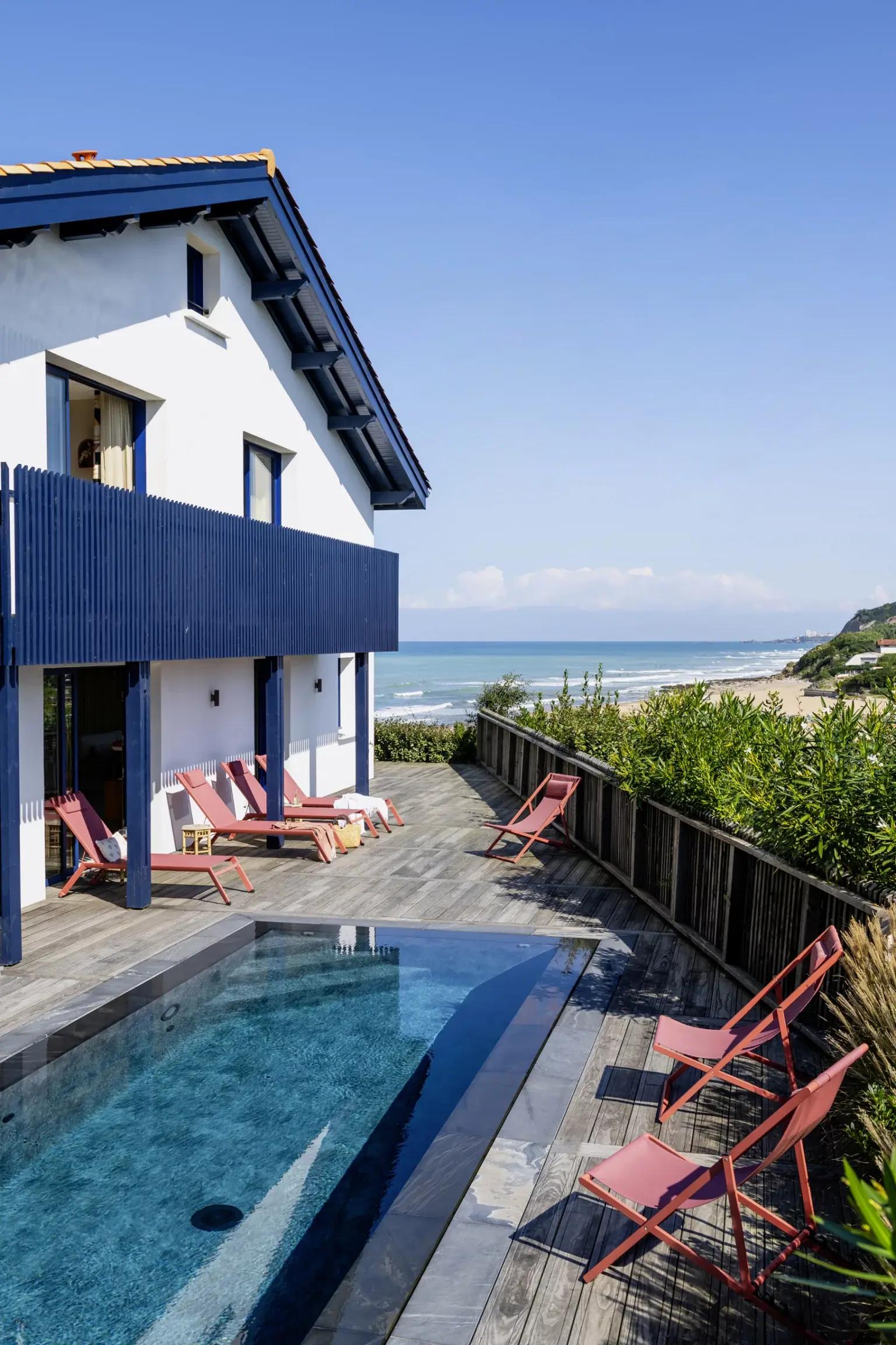 «Честно говоря, это была настоящая трущоба», — вспоминает архитектор Ромен Тевено. Состояние виллы, построенной в 1970-х, и правда было не из лучших — мрачное пространство, мало света и проемов, скучный фасад… А лестница на второй этаж вообще была на улице. Что же привлекло новых хозяев виллы Натали и Филиппа? Пара признается, что они решились на нее из-за потрясающего, на редкость живописного вида на пляж Бидар.