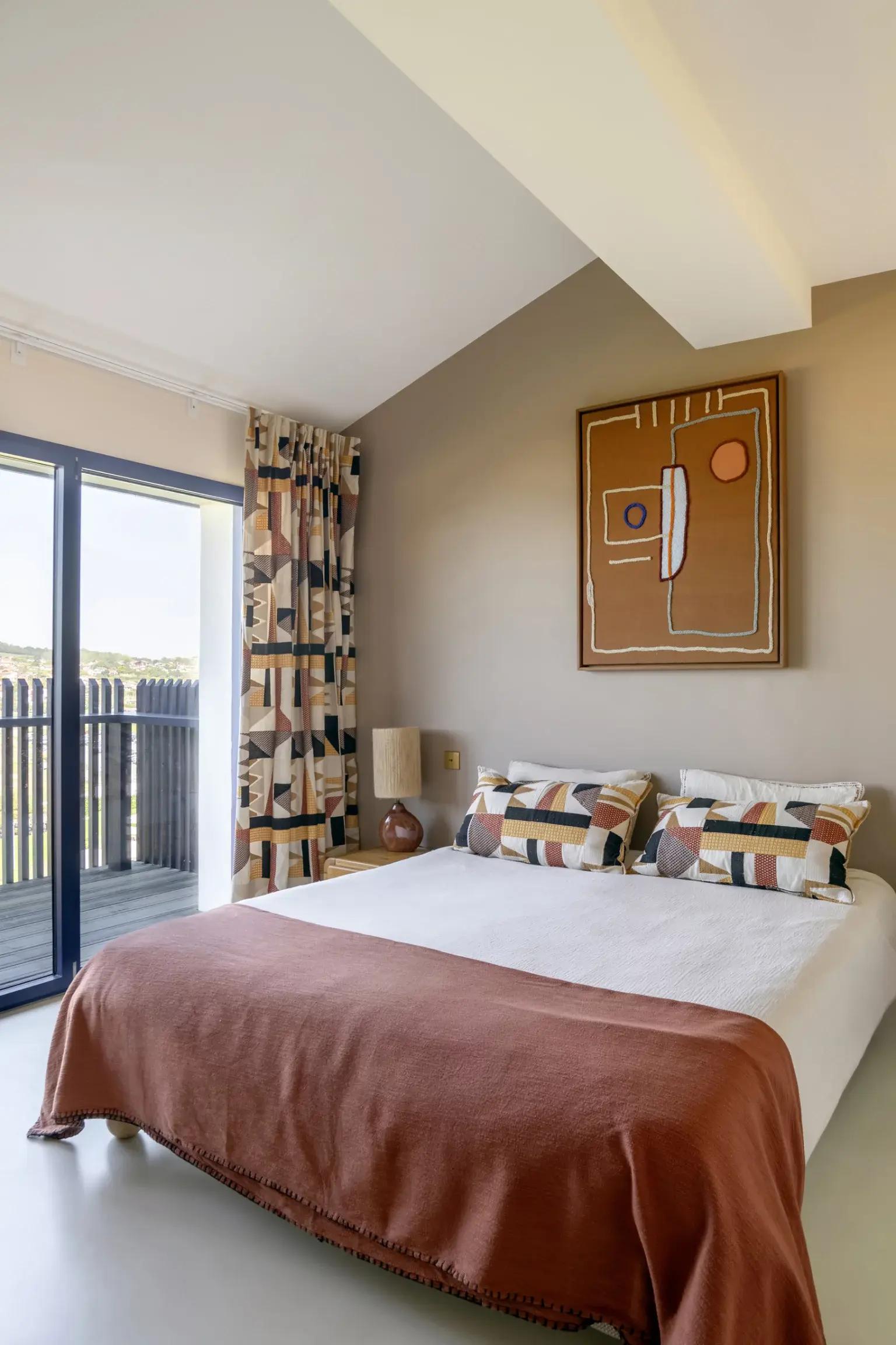 В этом районе они живут больше 20 лет, поэтому знают здесь все. То, каким будет интерьер, они решили сразу: палитра — из оттенков местной природы, пол — из вощеного бетона. К пейзажам этой небольшой деревушки отсылает светлое дерево и нежно-розовые тона, они напоминают крыши домов. А бакский красный цвет они решили поменять на такую же теплую охру в стиле семидесятых. Баскские визуальные коды, кстати, аккуратно расставлены по всему пространству.