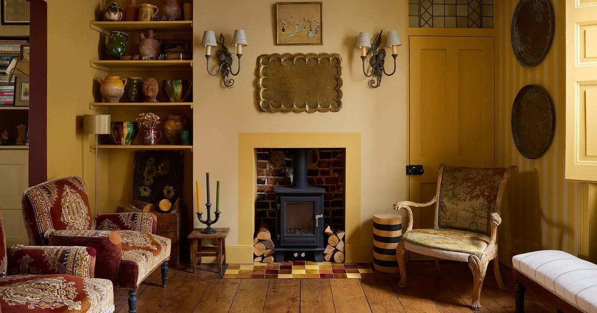 Гостиная. Краски: Cane, Cats Paw, Etruscan Red от Farrow & Ball. Винтажные викторианские стулья в чехлах, Will & Yates.