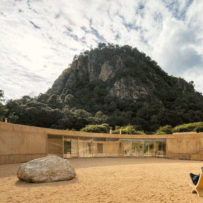Фернанда Каналес спроектировала круглый дом с внутренним двориком в Валье-де-Браво, Мексика, как солнечные часы, отражающие течение времени. Свет попадает внутрь из окон, ориентированных наружу, в сторону горы и вулкана, а затем, с наступлением ночи, падает из центра круглого двора.