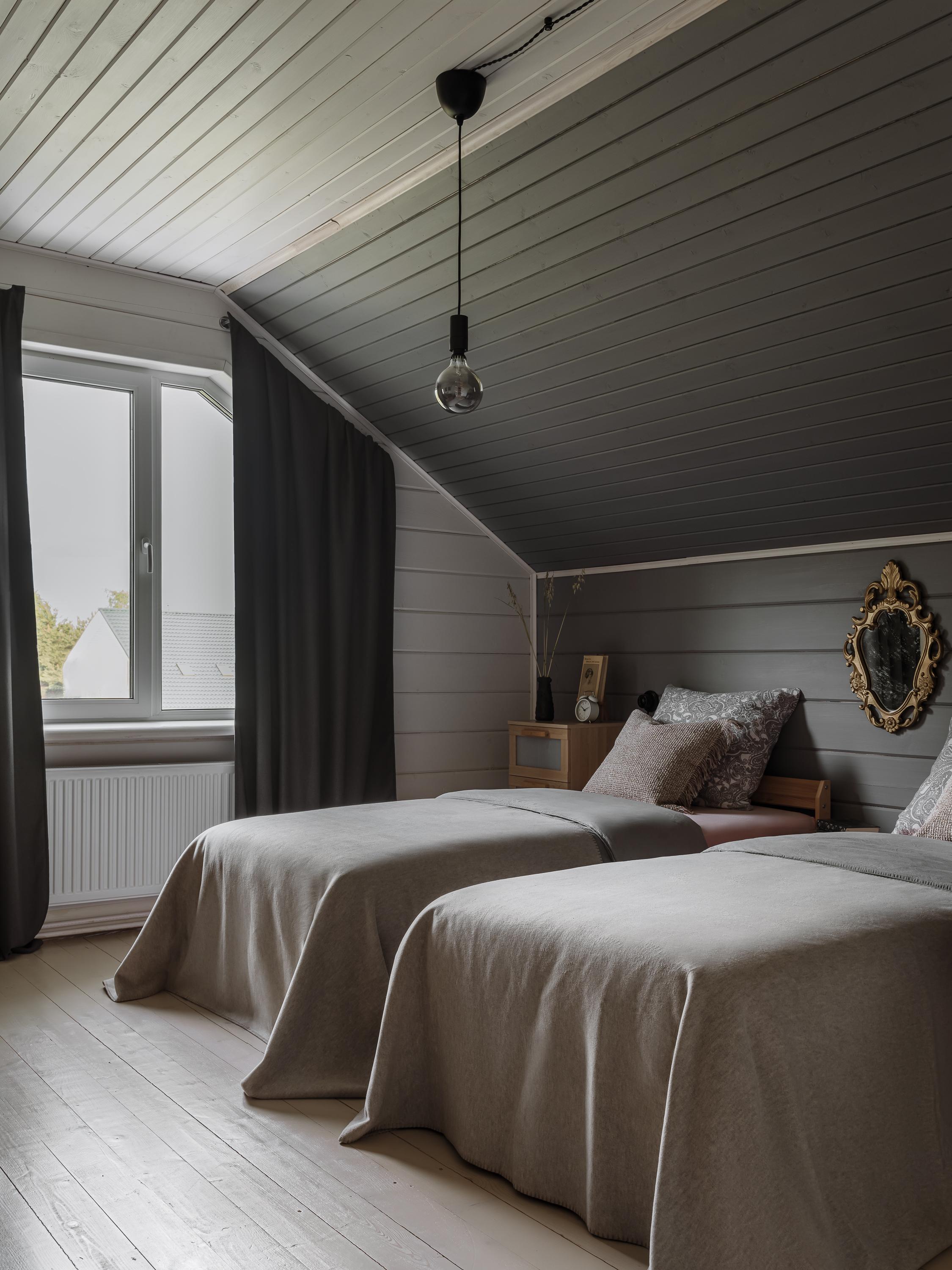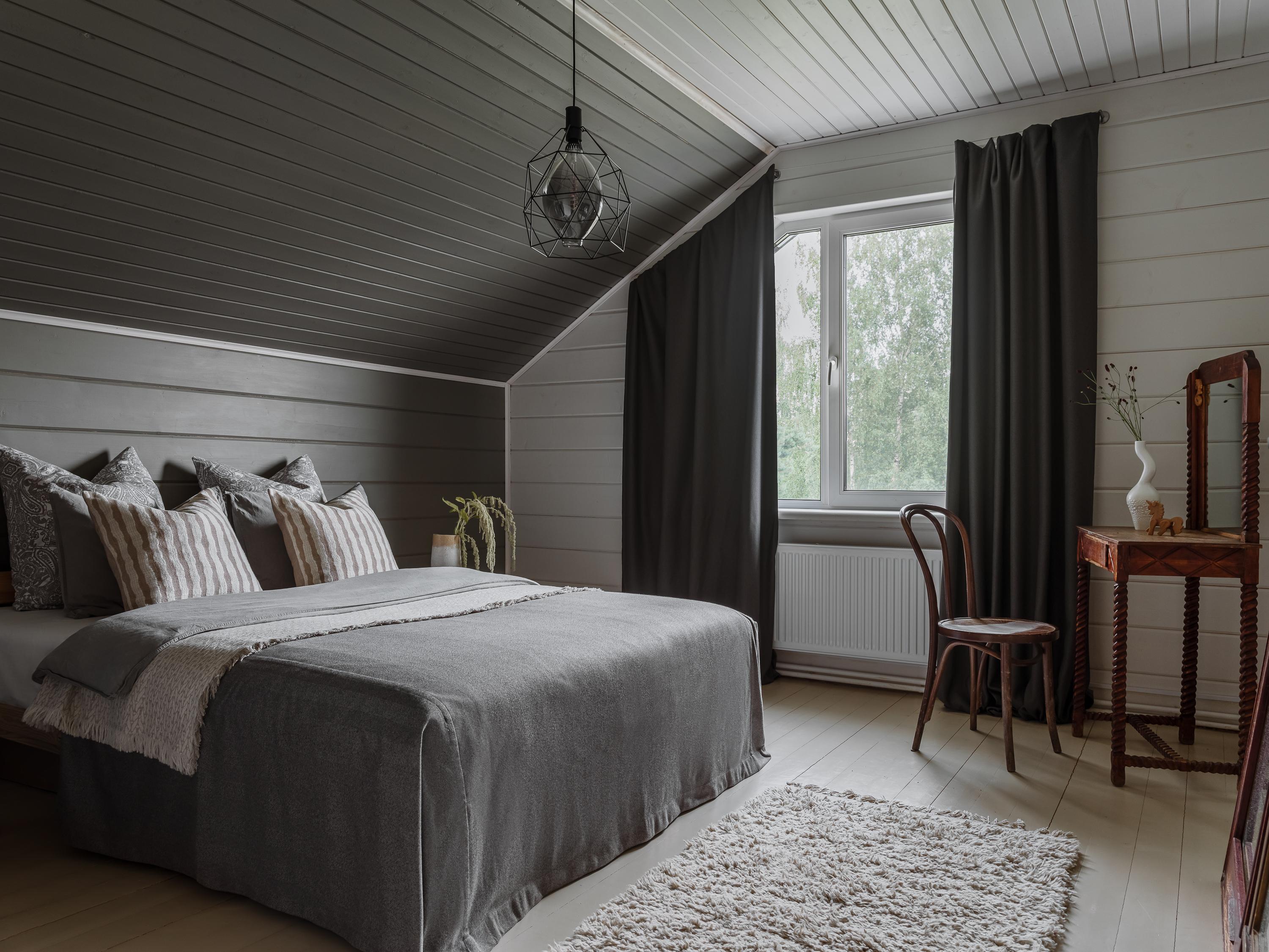 Первоначально на втором этаже была одна большая ванная комната, мы разделили ее на две — и одна из них теперь как раз принадлежит мастер-спальне. Всего теперь в доме три санузла, что делает жизнь комфортнее, особенно когда приезжают гости.