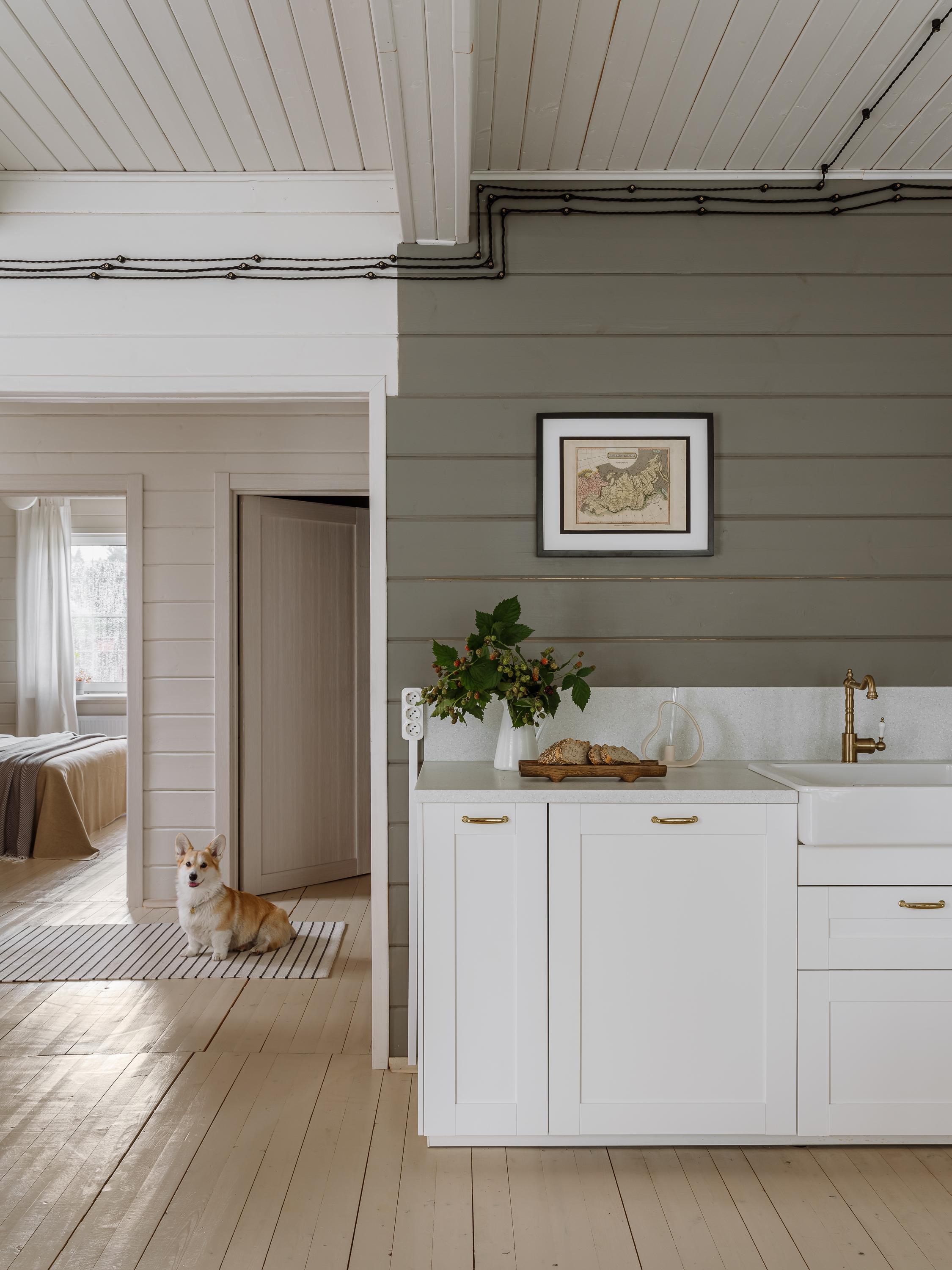 Главное желание было одно — чтобы всем, кто сюда приезжает, было удобно, спокойно и вкусно жить. И чтобы дом оставался живым, а не «поставленным». Когда мы задумывали этот дом, хотелось одного — чтобы здесь можно было собираться большой компанией: всей семьей, с близкими, с гостями, с Арлетт (наша собака породы корги, конечно, тоже важный член семьи). Чтобы каждому было по-настоящему комфортно — без тесноты или ощущения, что пришел «в гости».