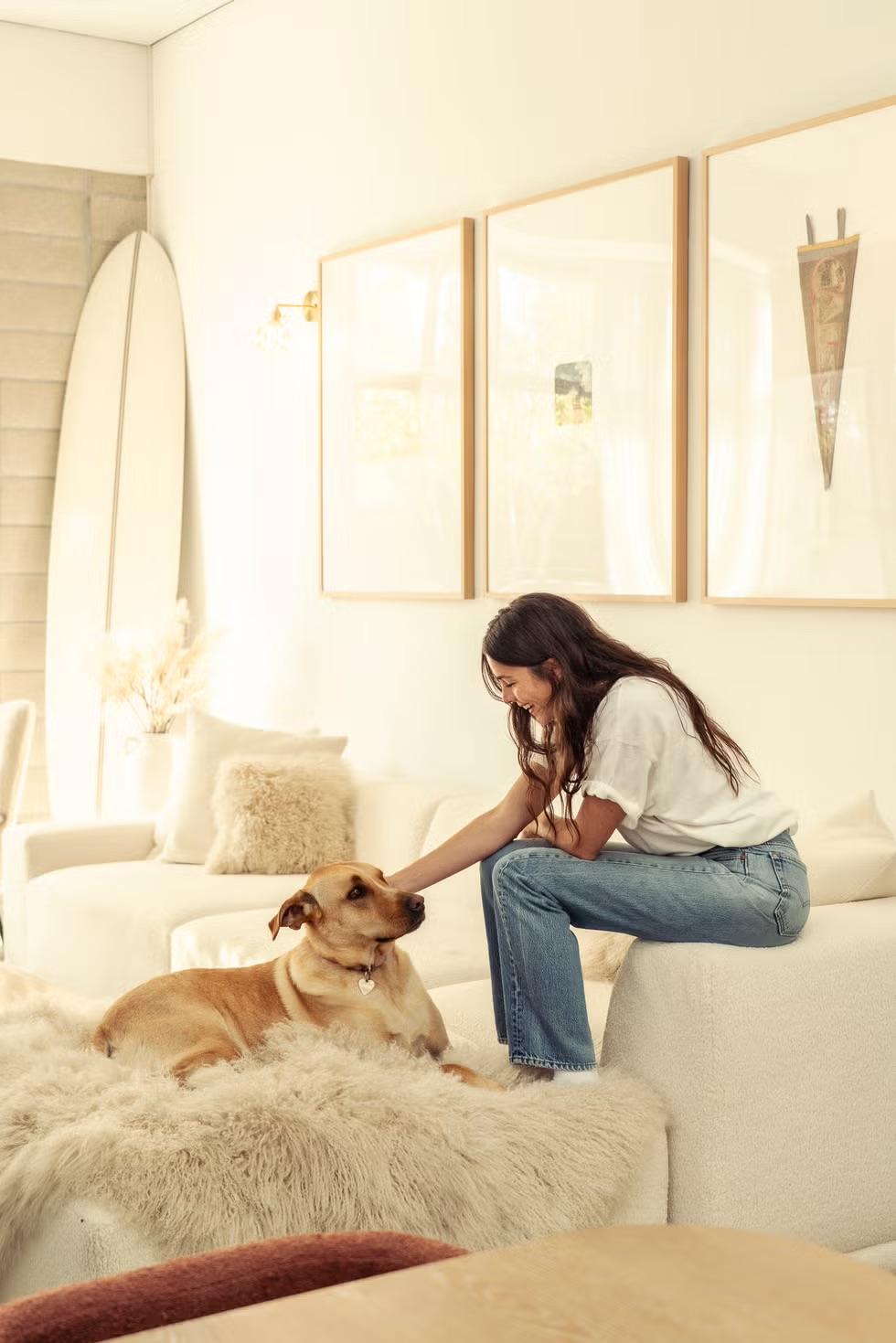 В качестве основы выбрана нейтральная палитра, дополненная мягкими цветовыми и фактурными акцентами. Стилистически в интерьере есть что-то от mid-century modern, что-то от сканди, что-то от тихой роскоши. Рабочий график Молли непредсказуем и хаотичен, поэтому она особенно ценит спокойствие и домашний уют: здесь много натуральных материалов и нежного текстиля.