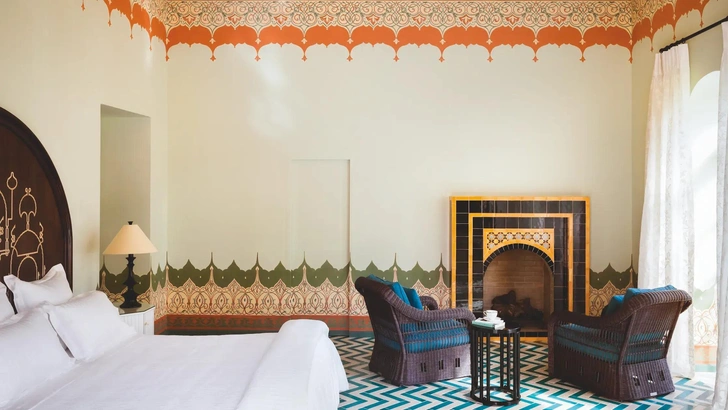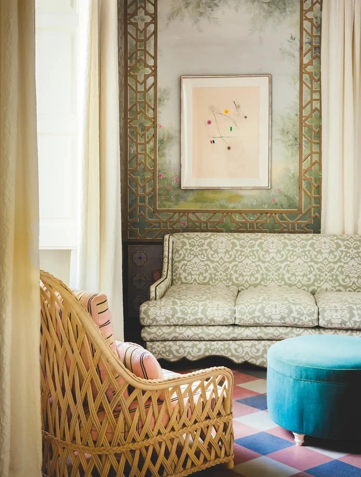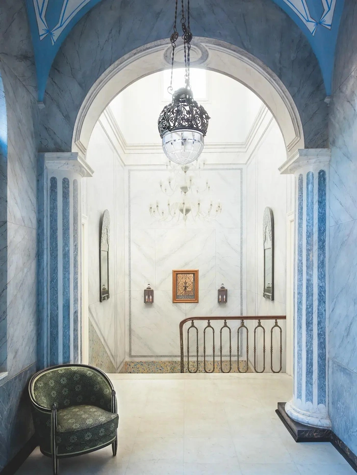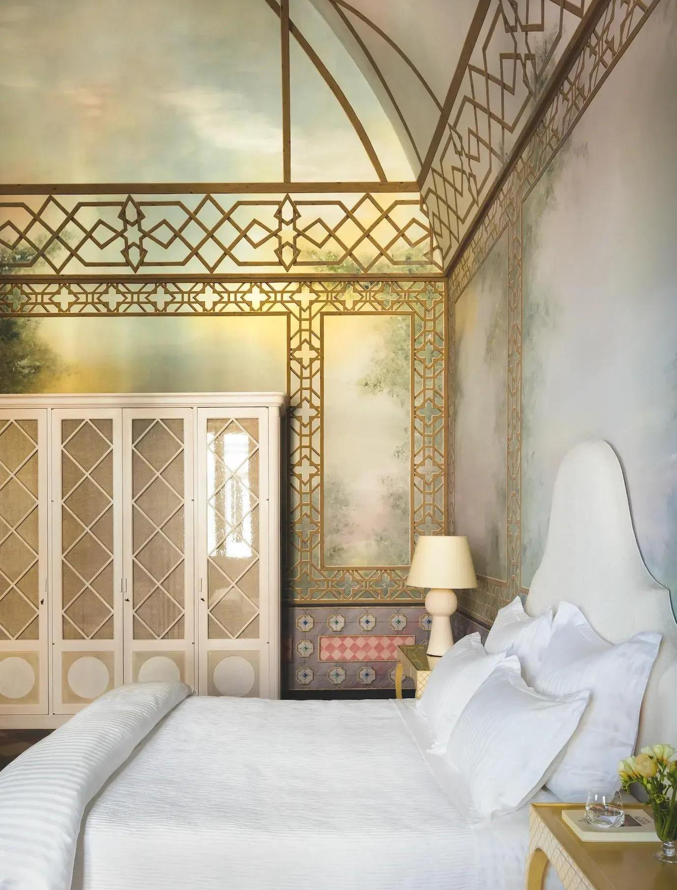Декоратор нашел элегантное решение: он отказался от картин на стенах в пользу воздушных фресок, созданных художником Роберто Беллантуоно. Эти рисунки, от романтических пейзажей до стилизованных восточных орнаментов, стали главным украшением интерьеров, наполняя их светом и создавая ощущение простора.