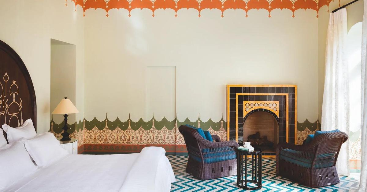 В спальне Фрэнсиса Форда Копполы изголовье кровати создано декоратором Жаком Гранжем, а мебель из ротанга придумал Витторио Боначина. Шторы отделаны вышитым индийским хлопком. Бело-голубой «паркет» из плитки подсказал Жак Гранж, а выполнили местный мастер.