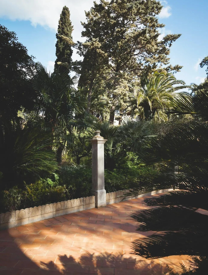 Сад палаццо, засаженный пальмами, оливковыми, фиговыми и лимонными деревьями.