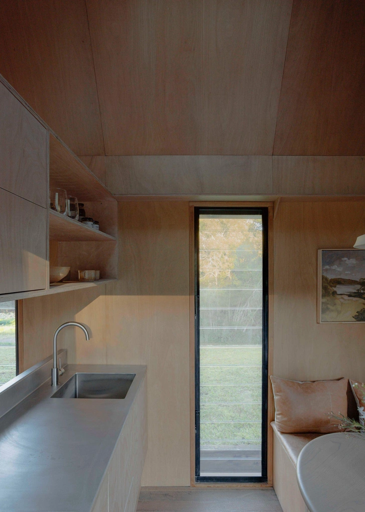 Этот небольшой мобильный дом в австралийском городе Байрон-Бей с первого взгляда напоминает практичную загородную постройку благодаря деревянной обшивке и металлической крыше. Проект создан архитектором Хейли Прайор (Hayley Pryor) в сотрудничестве со строителем Крисом Кингом (Chris King).