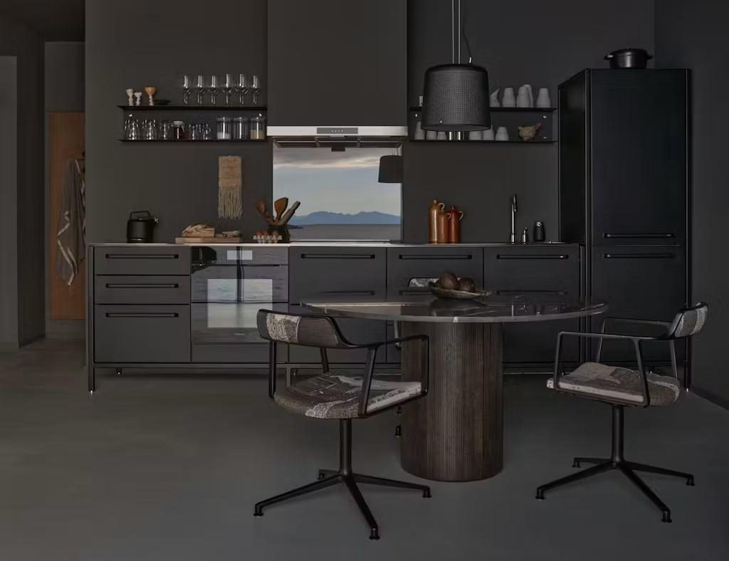 Кухня, Vipp. Вращающиеся кресла Vipp с принтом, разработанным Магне Фурухольменом специально для этого дома.