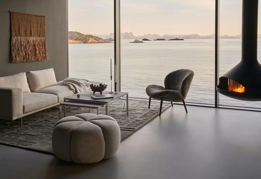 Интерьер выдержан в минималистичной, но теплой эстетике: мебель Vipp, несколько художественных работ самого Фурухольмена и натуральные материалы. Все здесь подчинено одной цели — не отвлекать от созерцания сурового и величественного ландшафта.