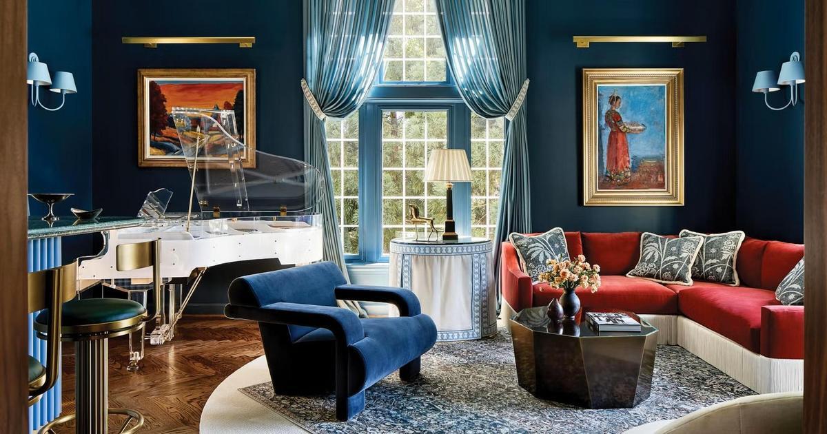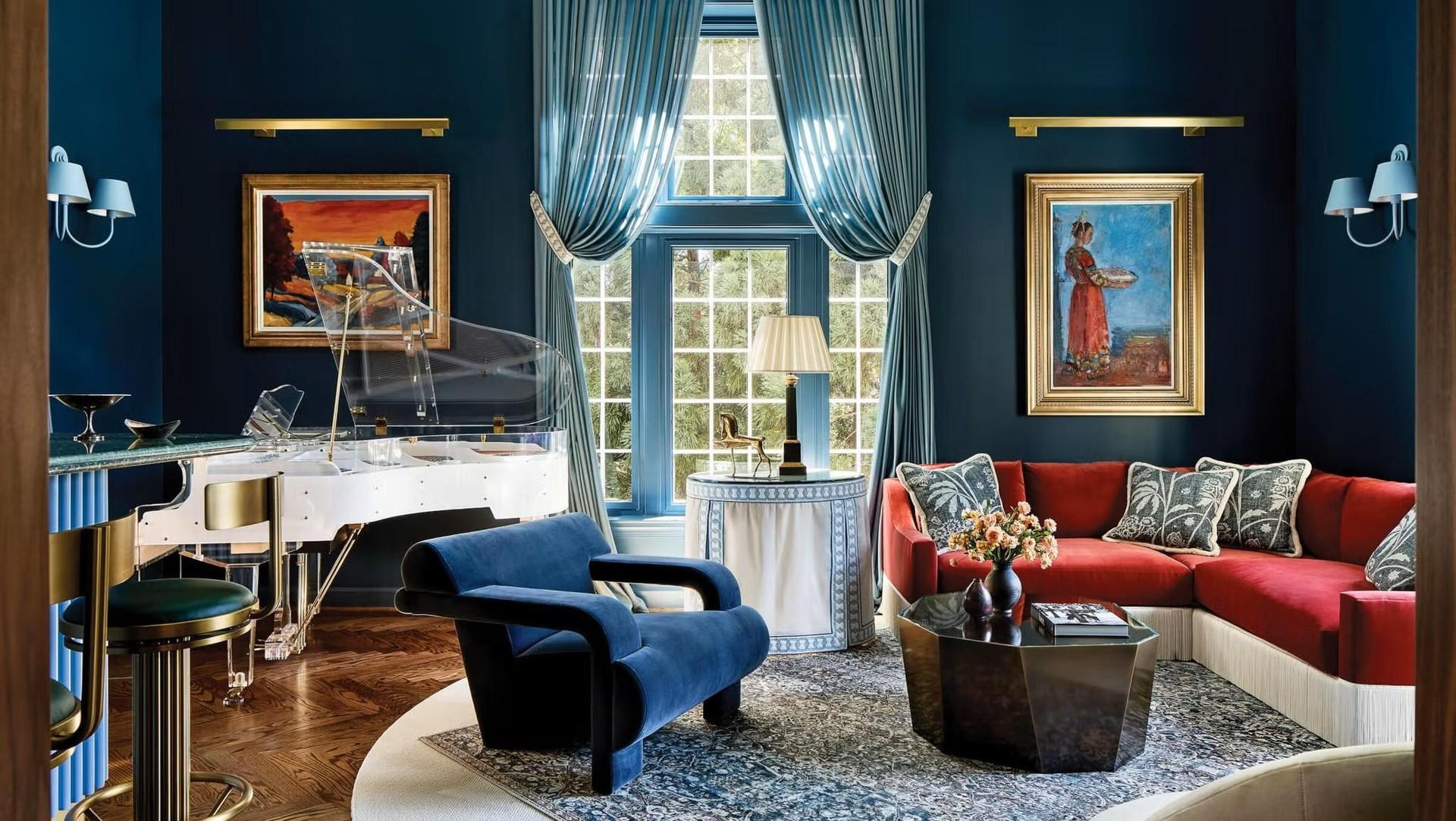 Эндрю Сувальски хотел, чтобы эта комната стала местом притяжения, и рассказал, что она была «пожалуй, самой бледной и недоиспользуемой» в доме. Он заменил старый плиточный пол деревянным паркетом-«елочкой», затем добавил бар, рояль и причудливую мебель, придав интерьеру театральности.