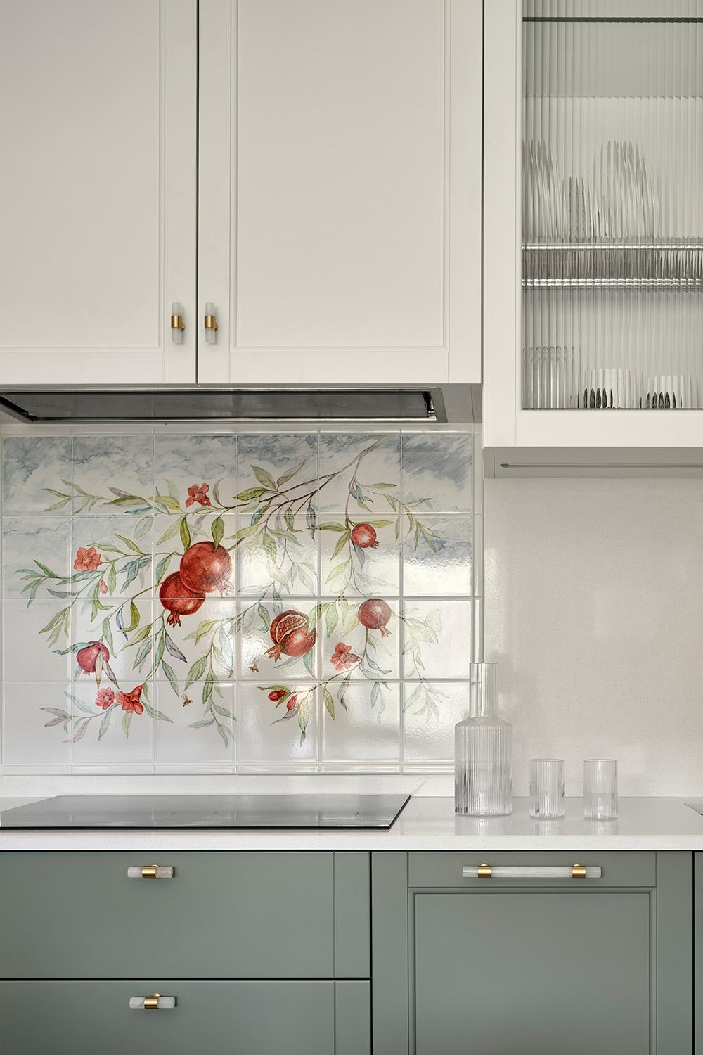 Керамическое панно на фартуке, художник Маргарита Морозова.