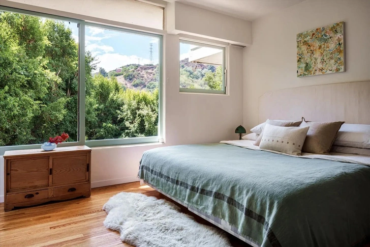 Со стороны здание выглядит довольно просто, даже неприметно — кажется, что это небольшой одноэтажный домик. Но со двора видно, что этажей у него два, а окружает его пышный сад, откуда можно спуститься к бассейну. Овальный бассейн, по некоторым версиям, спроектировал Рихард Нойтра (Richard Joseph Neutra), причем на тот момент архитекторы уже были в ссоре. Впервые дом продали в 1978 году, затем в 1997-м и 2024-м. Сейчас его вновь продают — за 2,5 миллиона долларов, это на 85 000 долларов ниже изначальной цены.