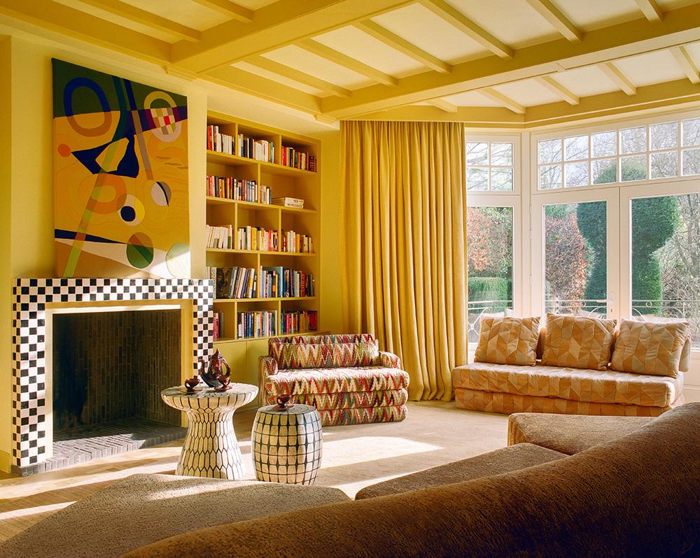 Камин и молдинги окрашены в цвет Ayers Rock, Ressources Paint. Кресло, дизайн Марко Дзанузо для Arflex, Италия, 1950 г