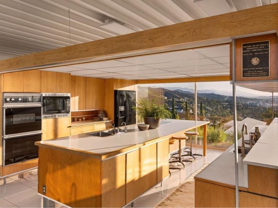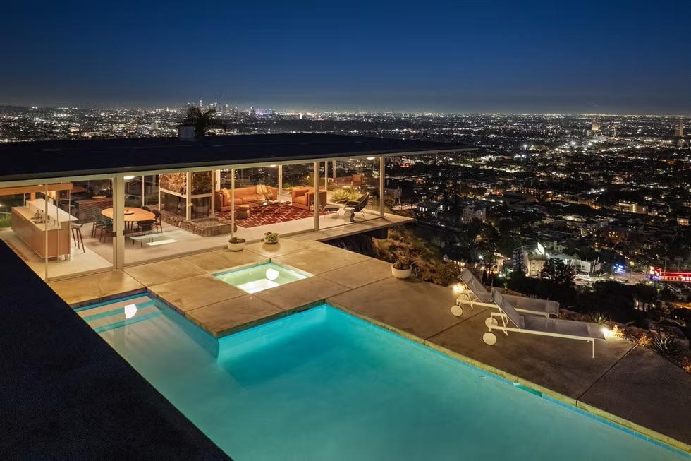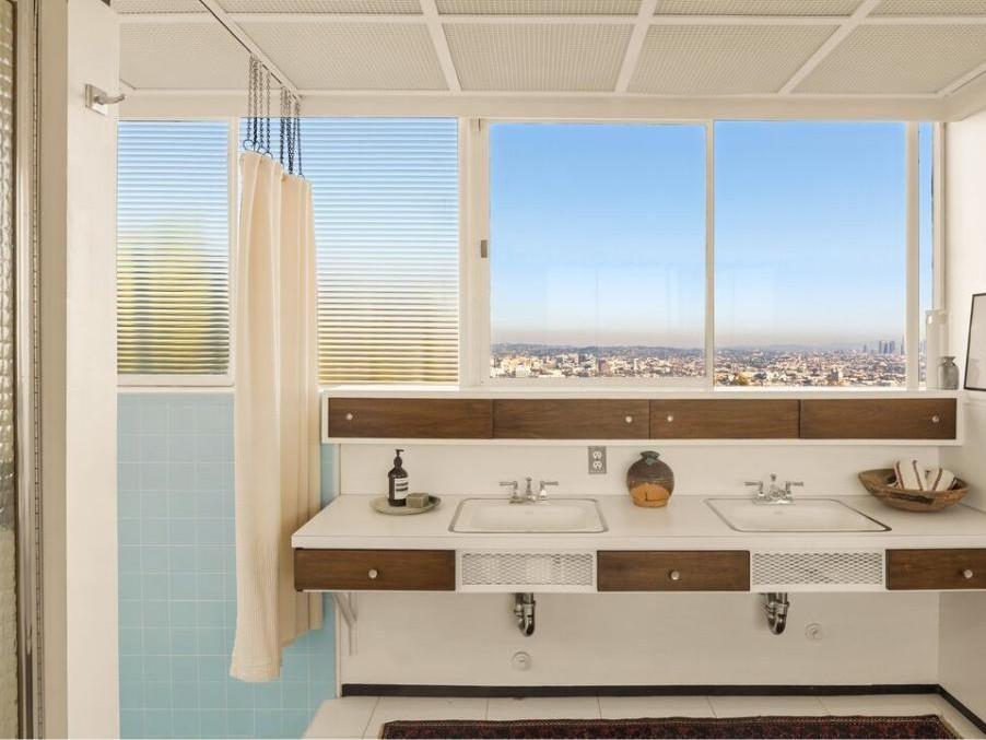 Семья Бака Шталя владела Case Study House № 22 все 65 лет — теперь икона модернизма середины века впервые выставлена на продажу за 25 миллионов долларов. Всего здесь 200 м2: в одноэтажном доме есть две спальни, просторная гостиная и терраса с бассейном. Благодаря L-образной форме роскошные виды открываются из любой его точки. А кровля, выступающая на 2,5 м, сохраняет тень и прохладу как внутри, так и на небольшом дворике для игры в бильярд.