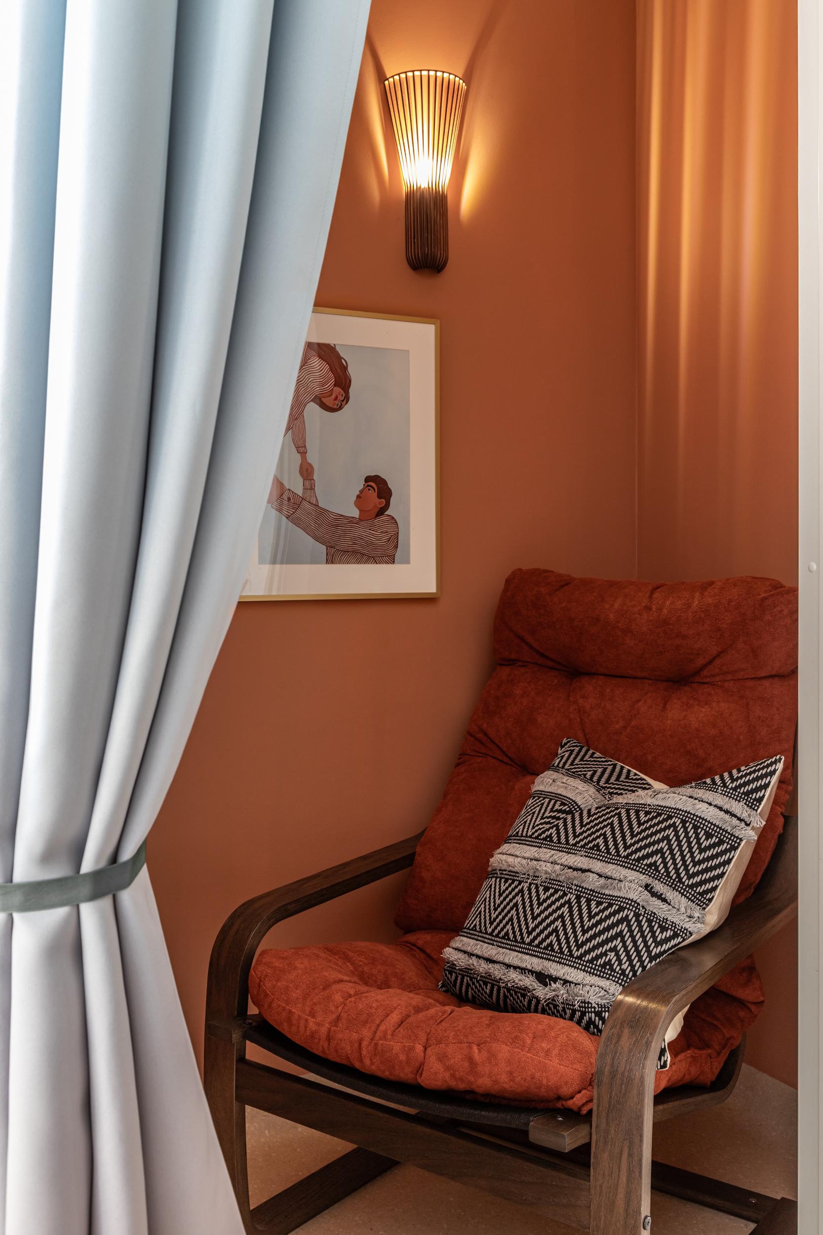 Пуф, Alot Moscow. Ковер, Kover.ru. Картина «Оранжевое небо», Ольга Рикун