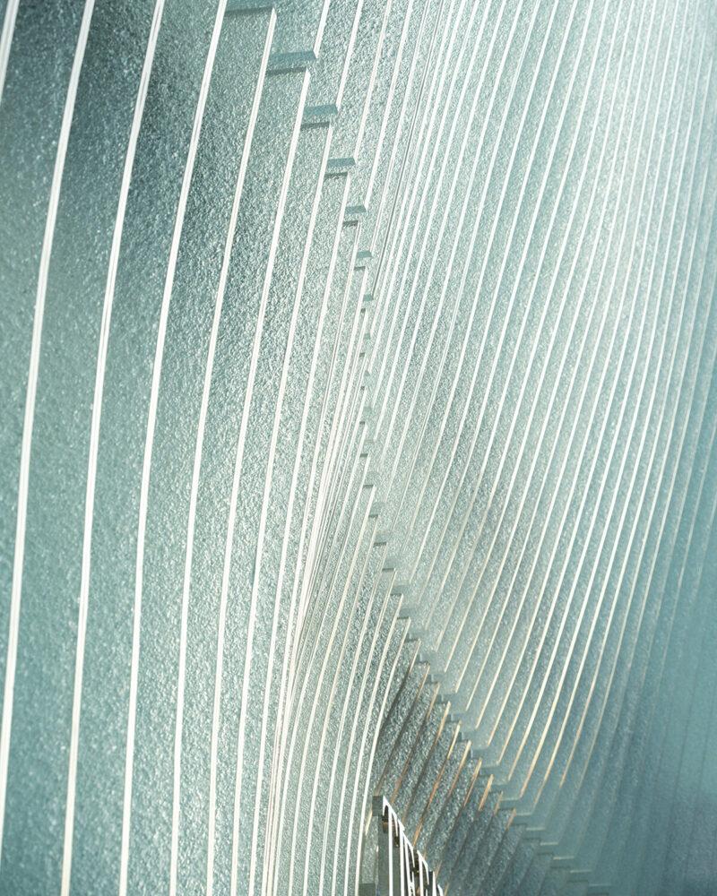 Главной особенностью фасада стала его изменчивость. Благодаря многослойности и полупрозрачности стекла, внешний вид здания меняется в зависимости от положения зрителя и времени суток. При движении вдоль здания возникает параллакс-эффект: слои стекла накладываются друг на друга, усиливая игру света и тени, подчеркивая кривизну поверхности.