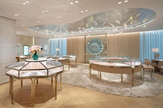 Проект голландского бюро MVRDV, уже работавшего с ювелирным домом, строится вокруг концепции фасада как «драгоценной упаковки». Четырехэтажное здание, расположенное на оживленном перекрестке, обернуто непрерывной вуалью из полупрозрачного стекла, которое формирует запоминающийся образ.