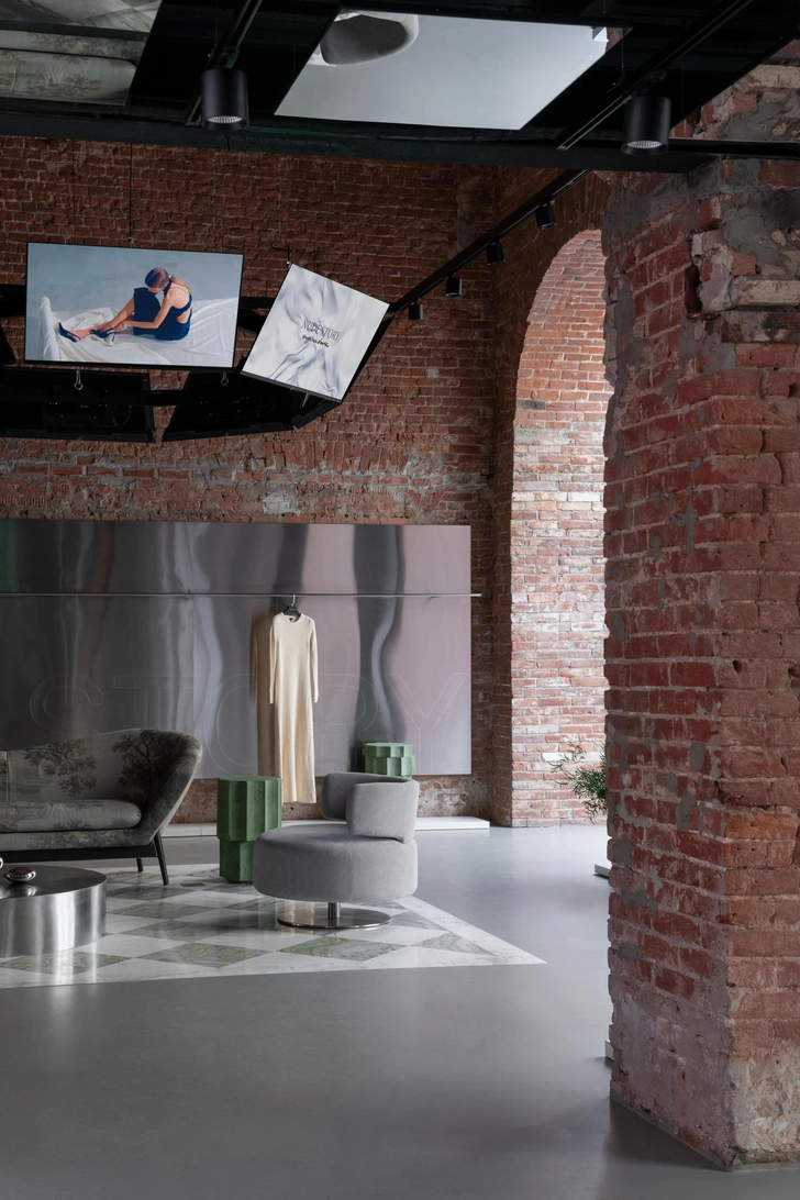 Современных клиентов уже не удивить просто красивым интерьером. Поэтому мы создали мульти-пространство и интегрировали digital-инструменты, с помощью которых бренд может рассказать о своем продукте в разных форматах — так мы развили диалог между прошлым и настоящим.