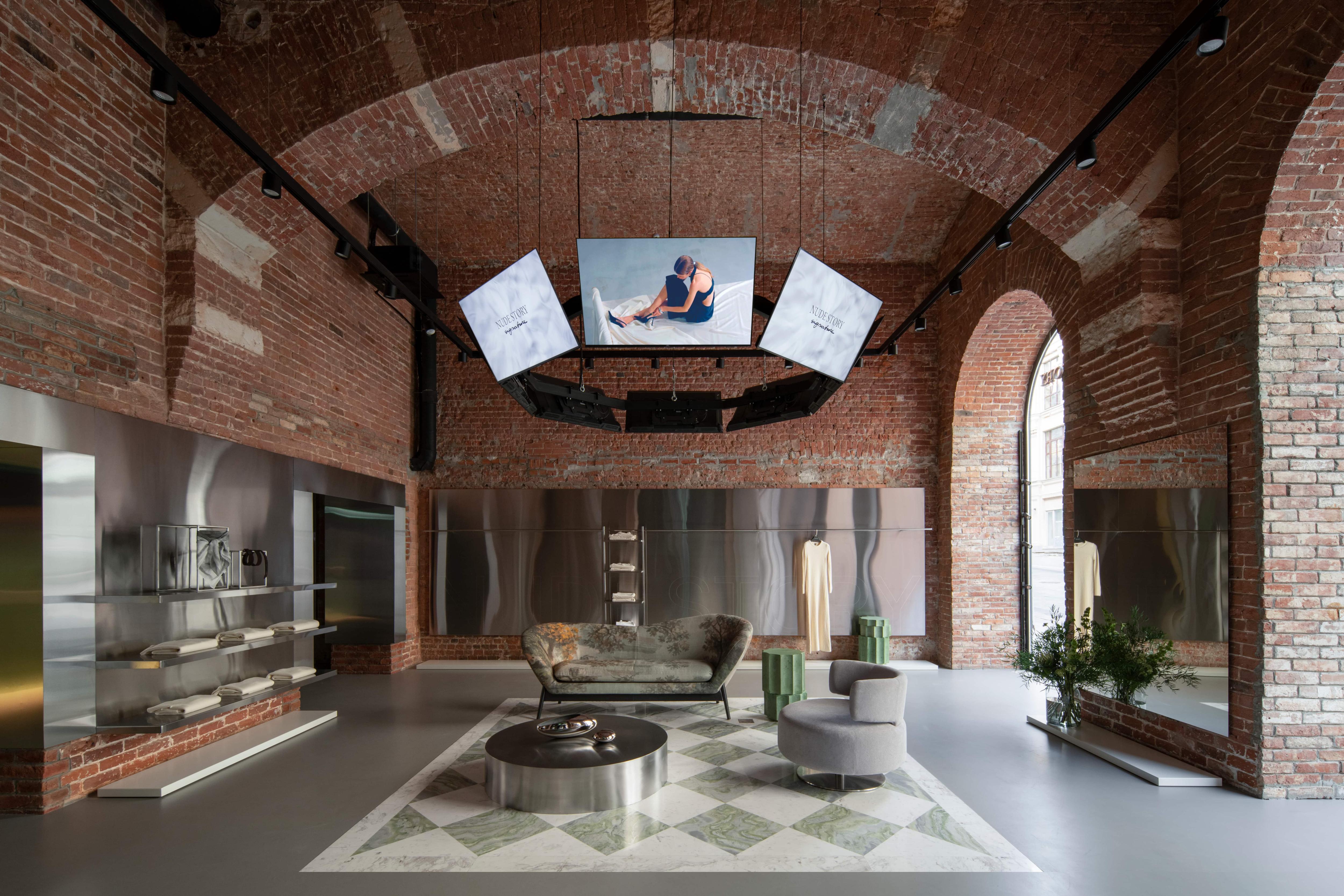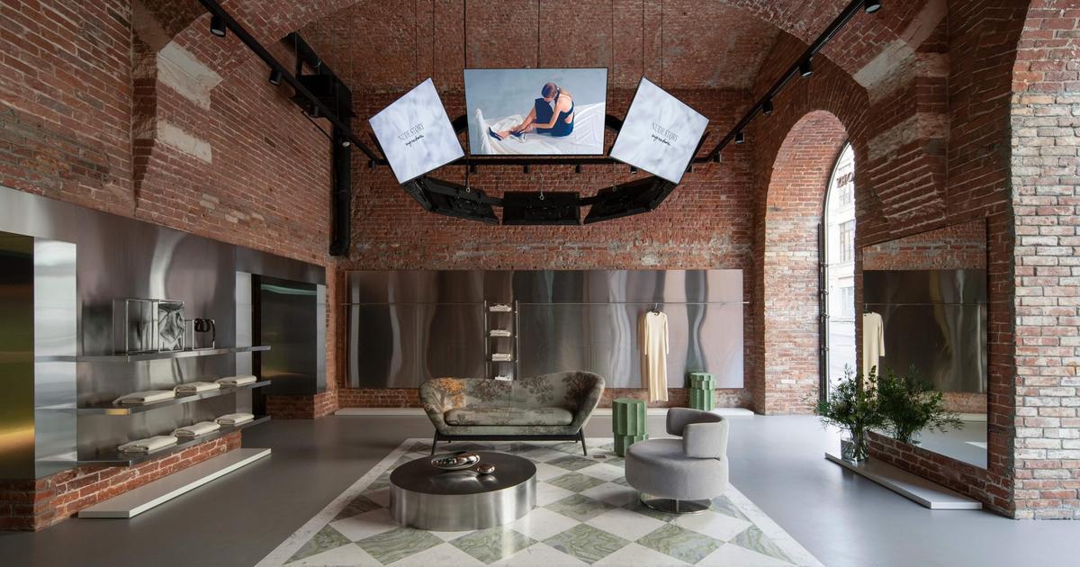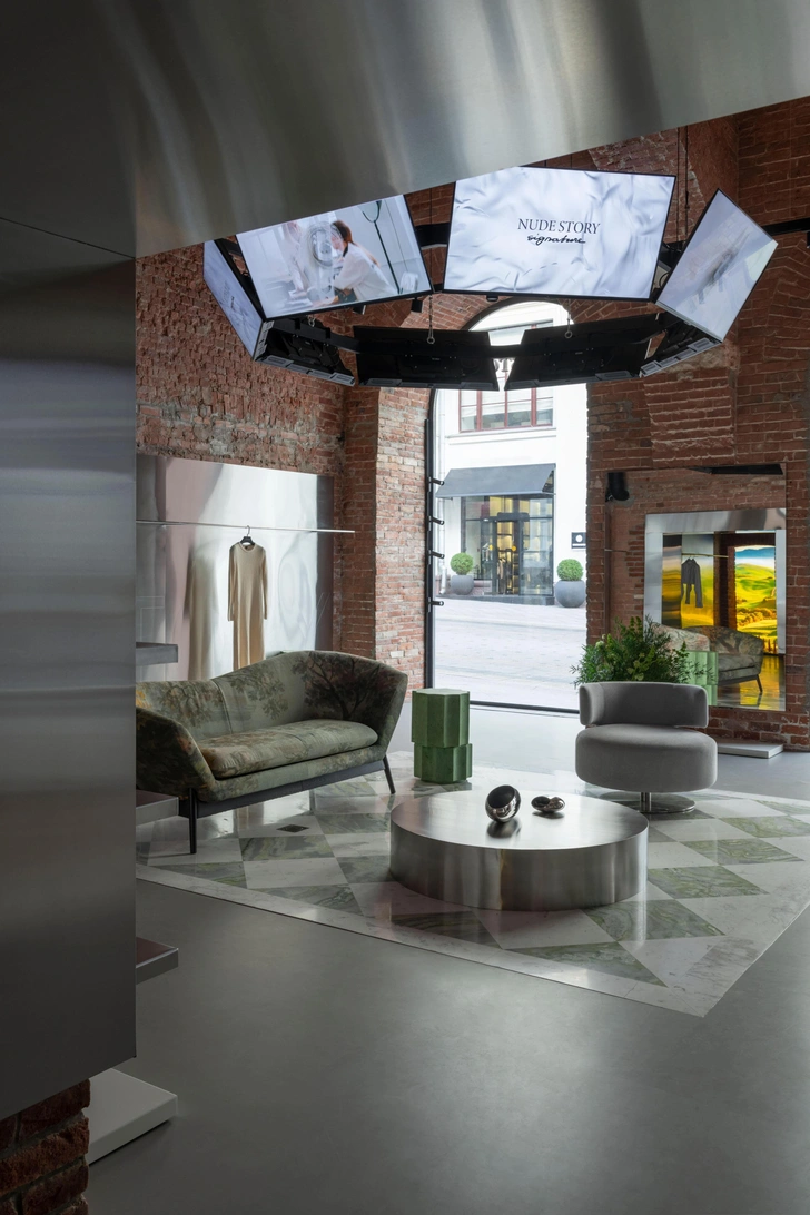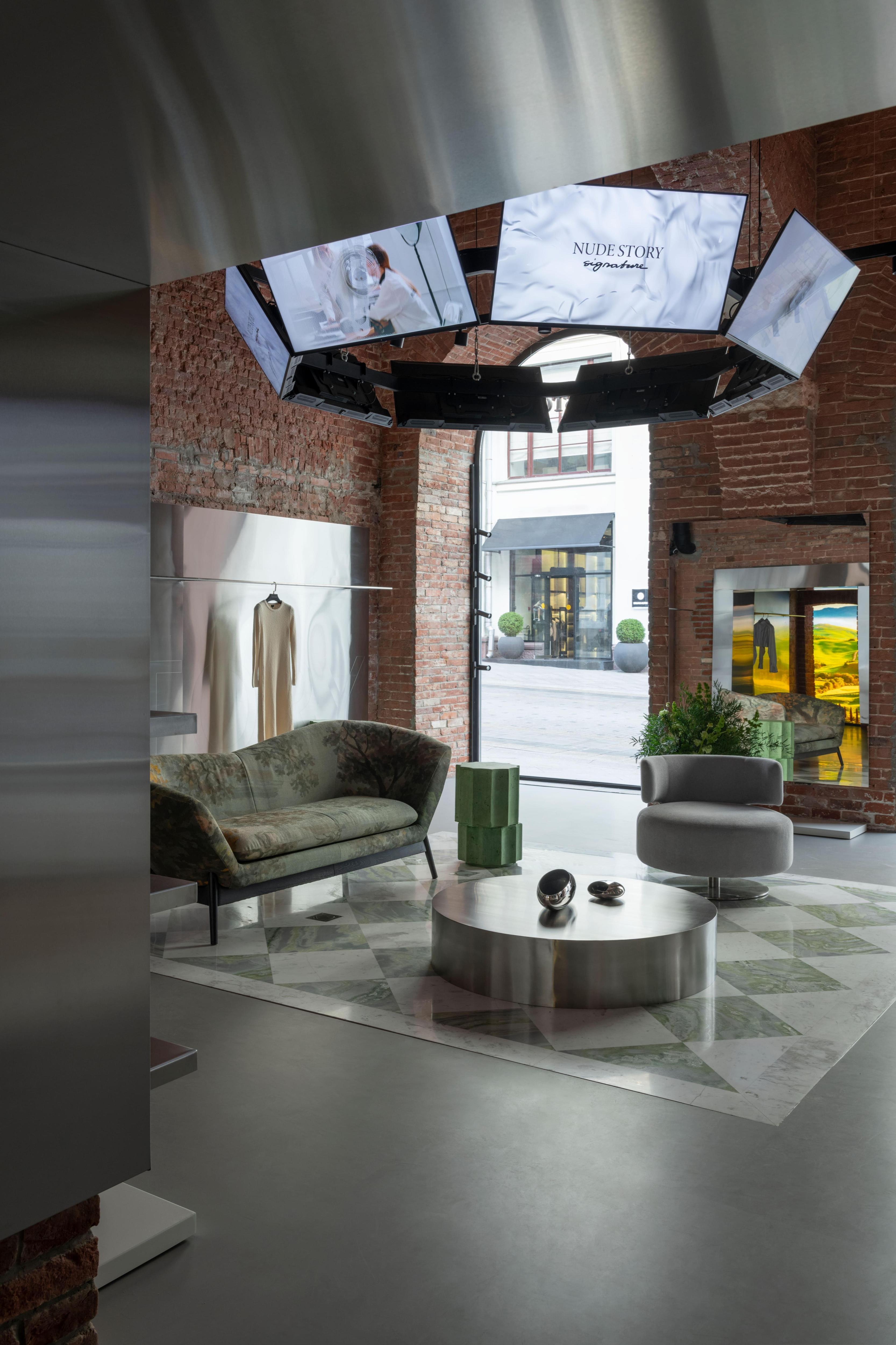Для магазина Nude Story было выбрано здание 1899 года — доходный дом А. С. Хомякова на пересечении Кузнецкого Моста и Петровки. В производстве бренд использует итальянские ткани — клиент любит Италию и закупает там сырье, любит там бывать и часто при создании коллекций вдохновляется этой страной.