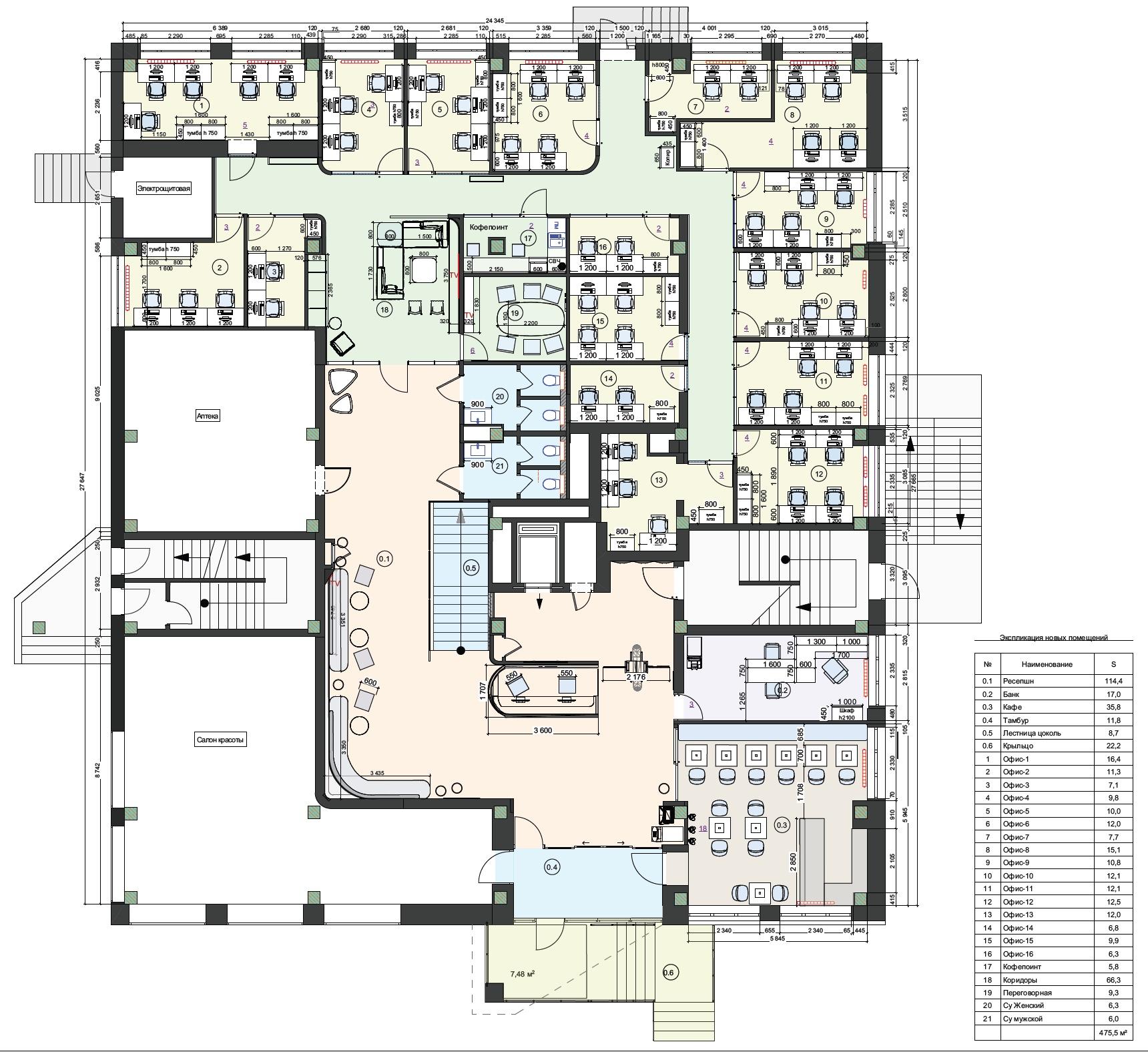 План офисов 500 кв. м. Проект студии YU dsgn.