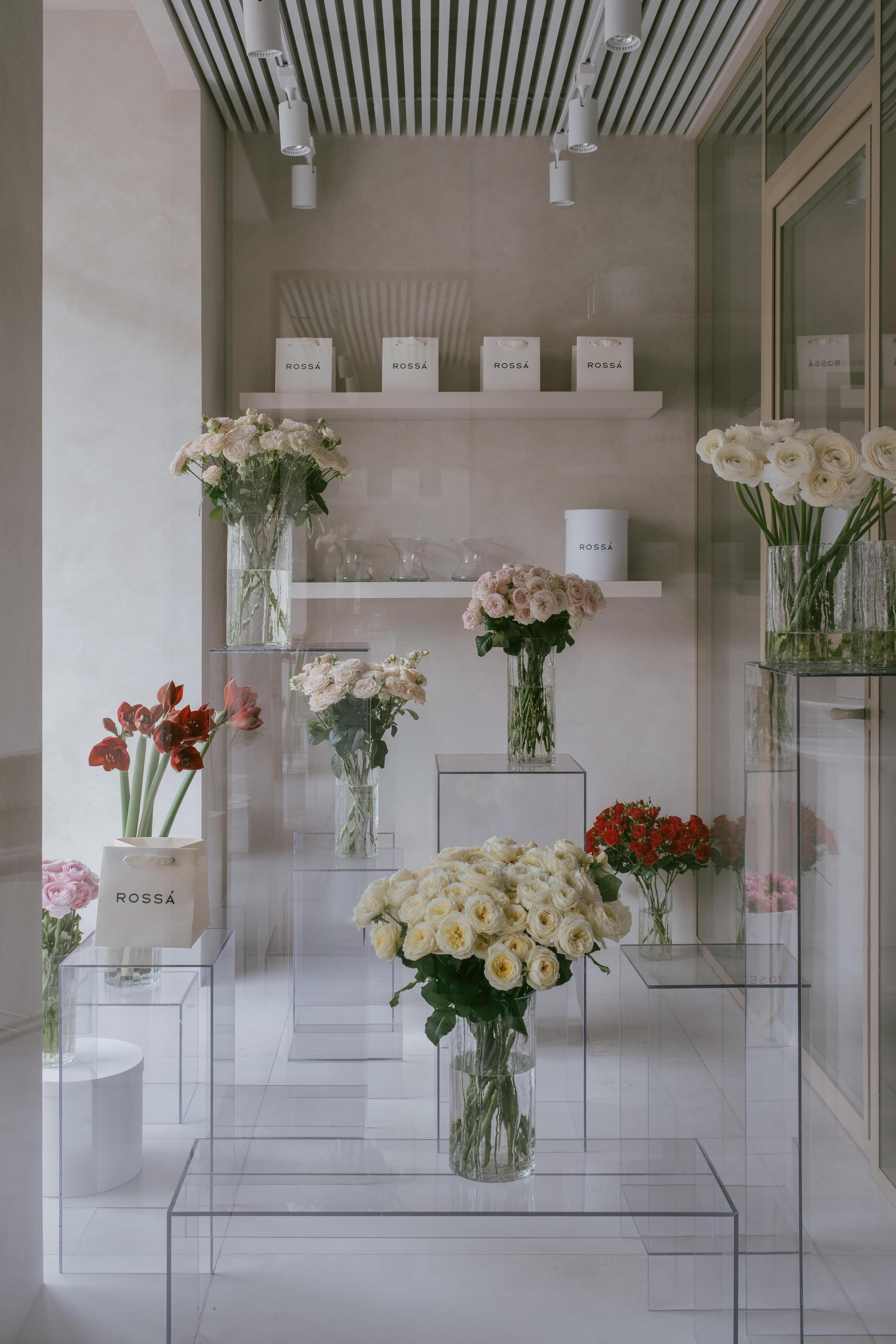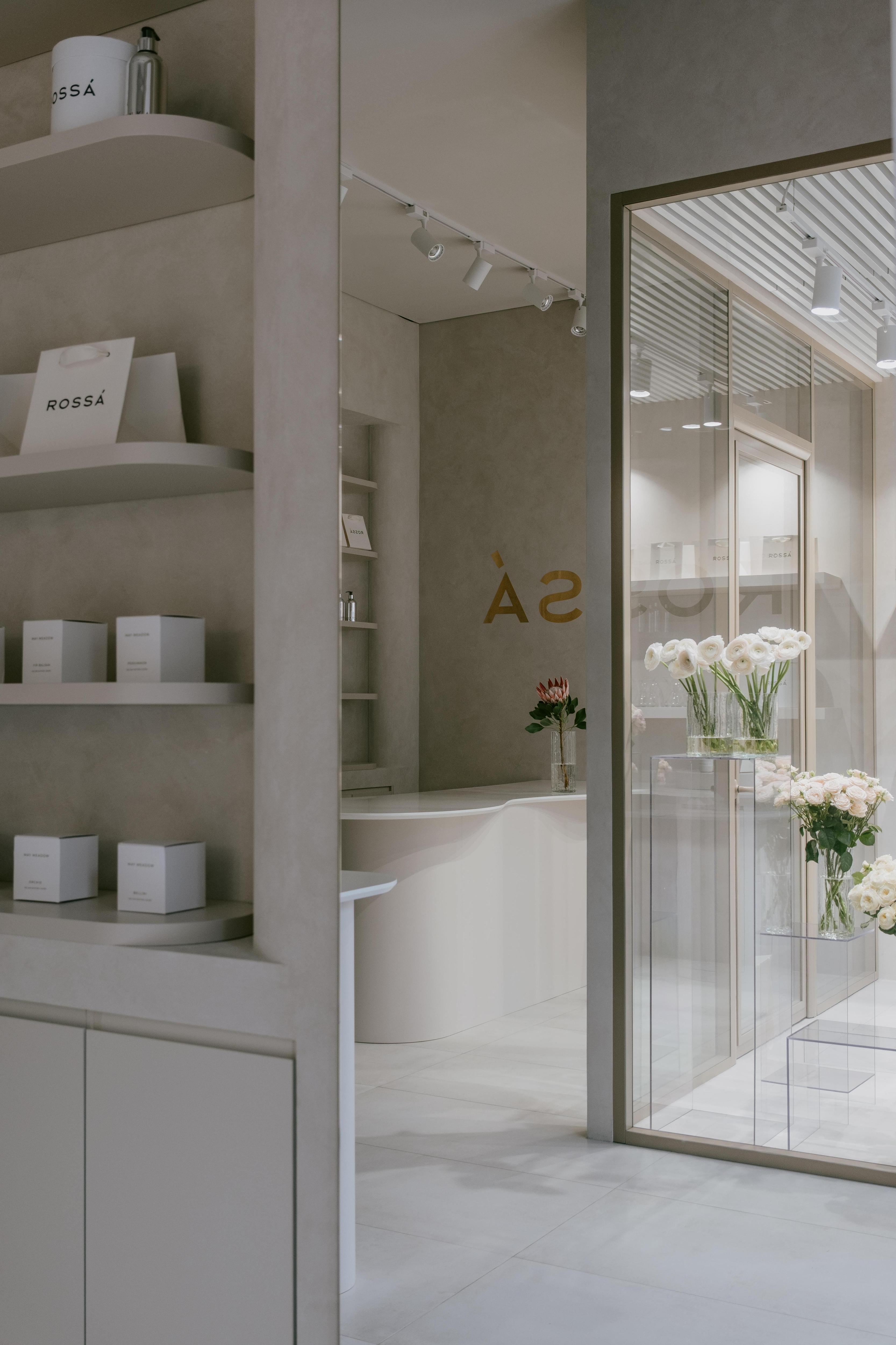 Наши заказчики — сеть цветочных бутиков Rossa. Они известны в Москве и теперь открывают новый магазин в Краснодаре. Бренд выработал свой фирменный стиль, поэтому мы старались не уходить далеко от его концепции, сохранив минимализм с чистыми линиями, плавными формами и простым, элегантным сочетанием материалов. Нам досталось компактное пространство — всего 41 м2. Здесь нужно было разместить четыре функциональные зоны, не забывая и об эргономике, удобстве покупателя.