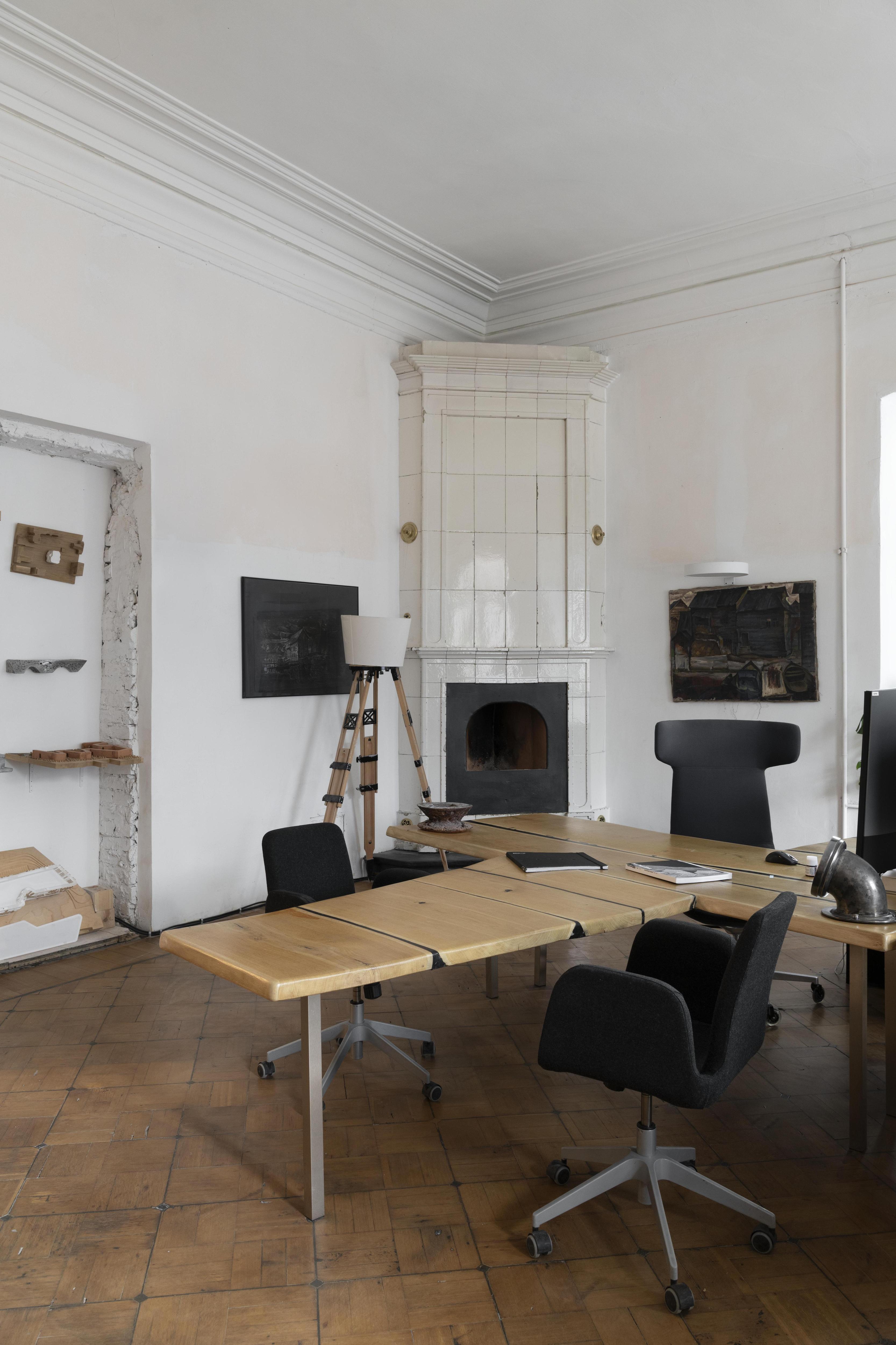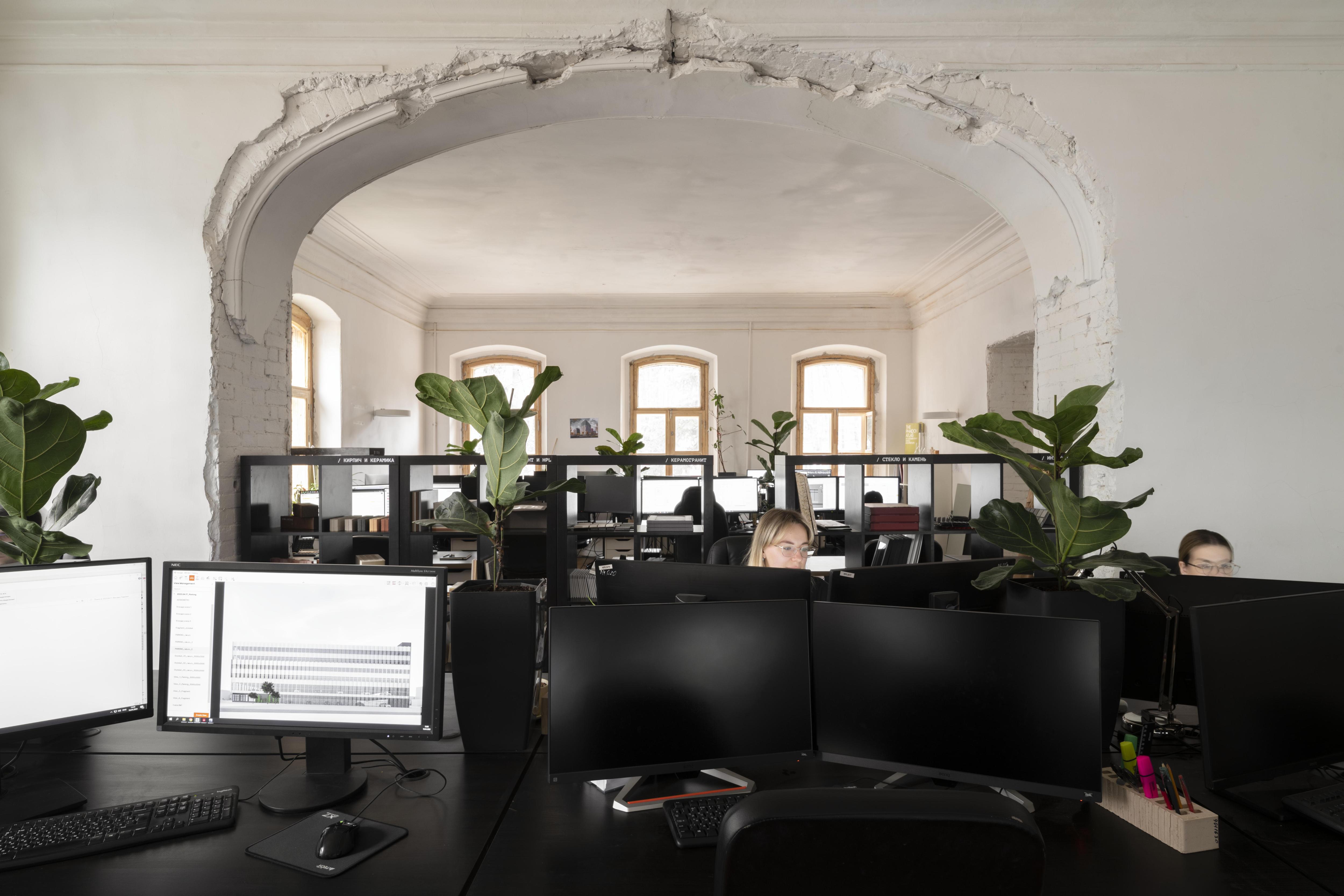Перед командой стояла задача создать современный офис для 200 человек и одновременно сохранить наследие прошлого. В советское время пространство было «нарезано» на маленькие комнаты, которые отдали для жилья служащим, а часть помещений заняла администрация завода. После перепланировки бюро выбрало формат open space для лучшей коммуникации между сотрудниками.