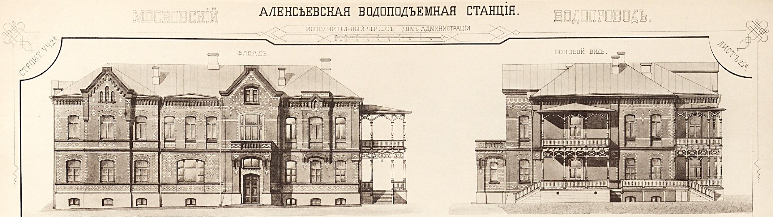 Здесь находились кабинеты главного инженера московских водопроводов Владимира Ольденборгера, который и заказал эту постройки, а также телефонная станция и канцелярия. Здание сохранило первоначальный объем и декор фасадов, его украшает декоративный фриз с геометрическим узором из белого кирпича.