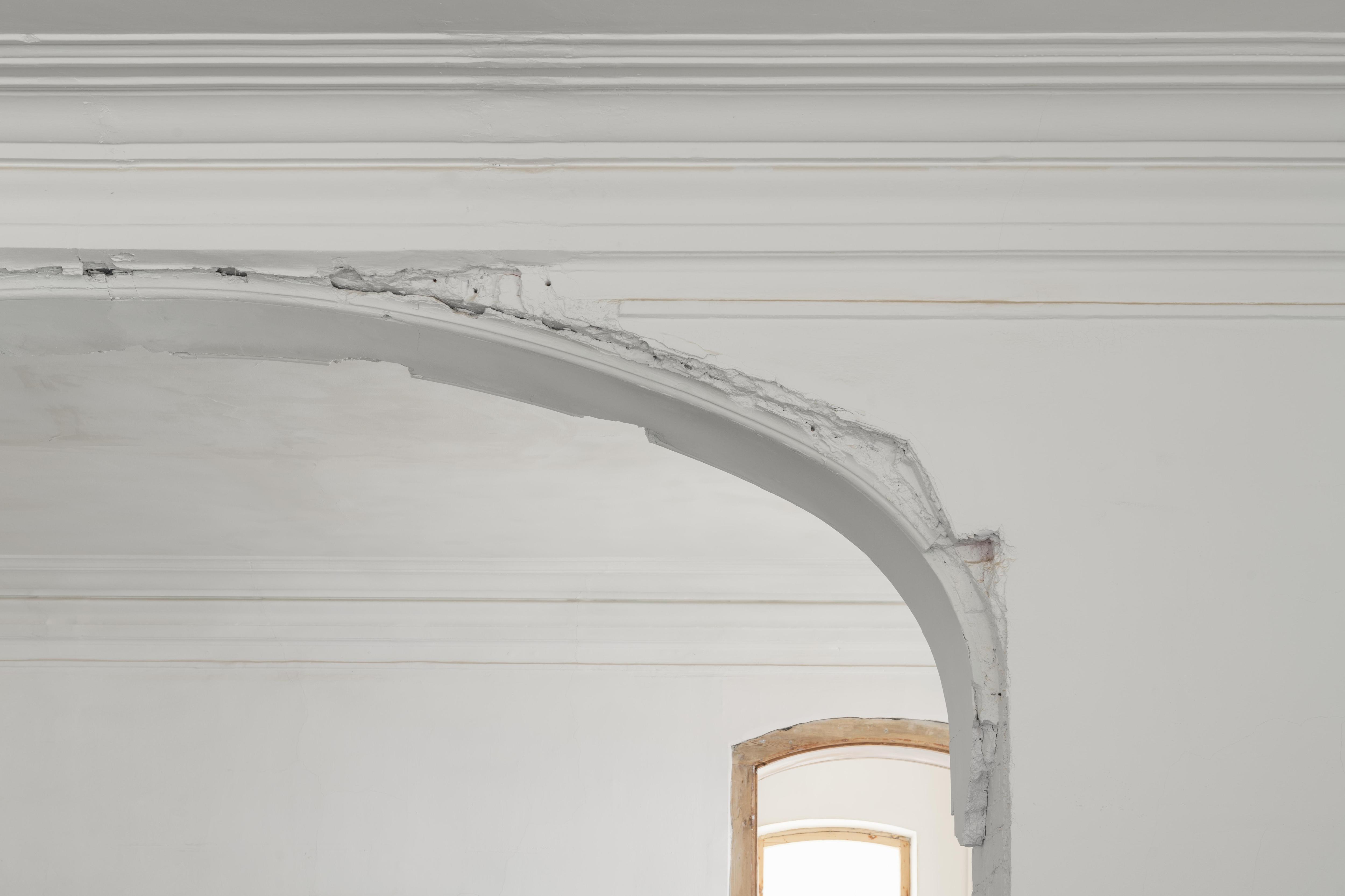 Потолки были частично разрушены, а уцелевшие участки скрыты под подвесными плитами. Сейчас их расчистили и украсили восстановленной лепниной. Под напольным покрытием советских времен (линолеумом, ДВП и битумом) обнаружили сохранившийся паркет из четырех пород дерева.