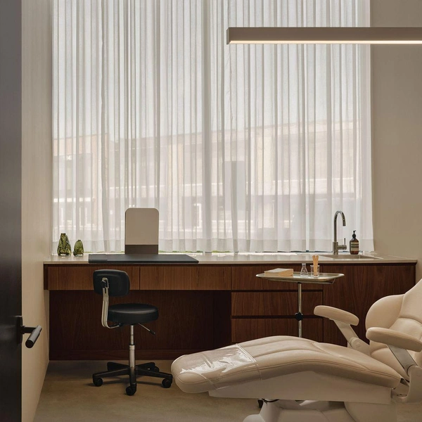 Клиника Surface Dermatology Clinic, расположенная в Оквилле, на берегу озера к западу от Торонто, как раз из таких медицинских учреждений. Интерьер разработало бюро Atelier Carle, архитекторы использовали ностальгические нотки стиля mid-century и современный минимализм: их объединение создало сдержанную, но гостеприимную атмосферу.