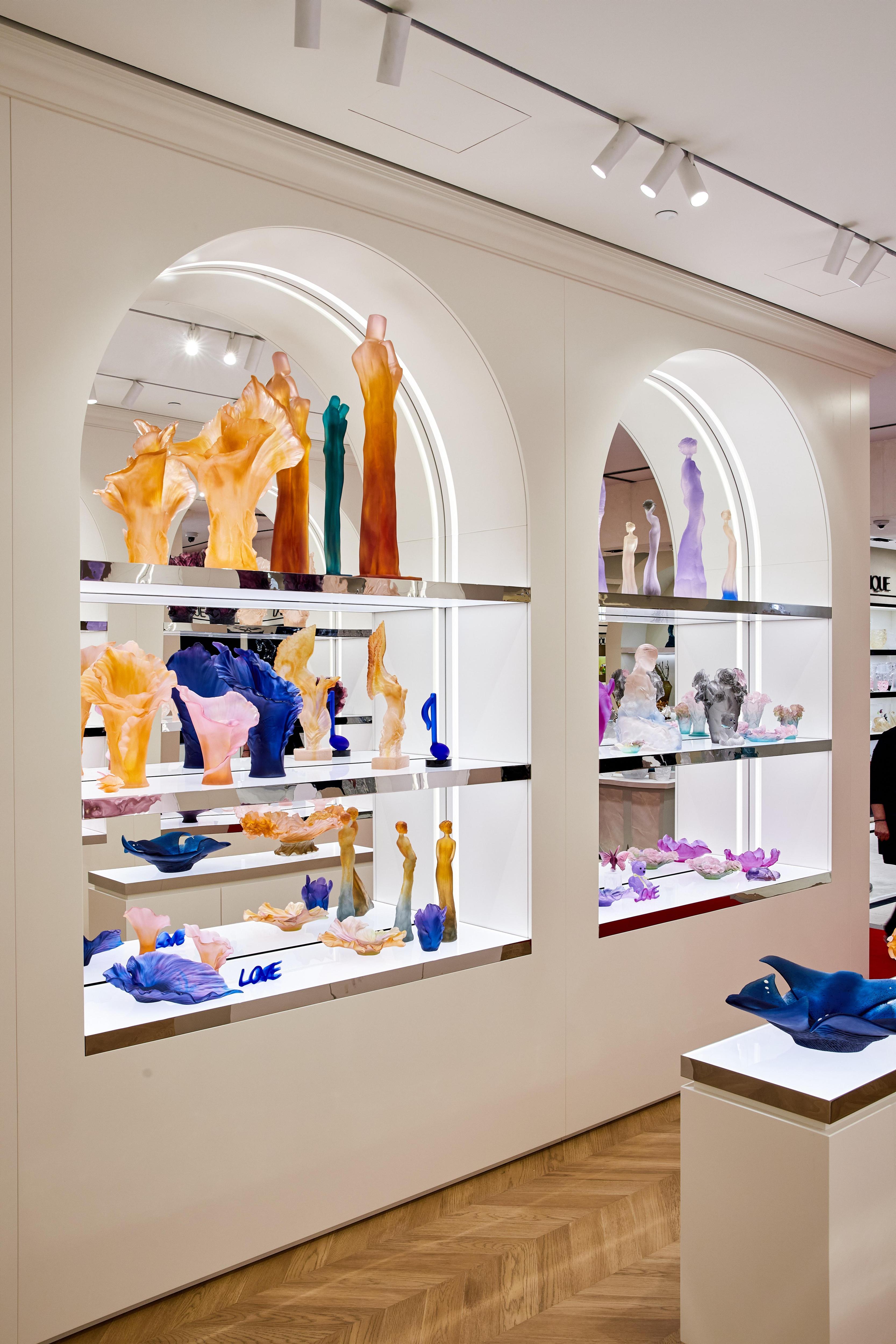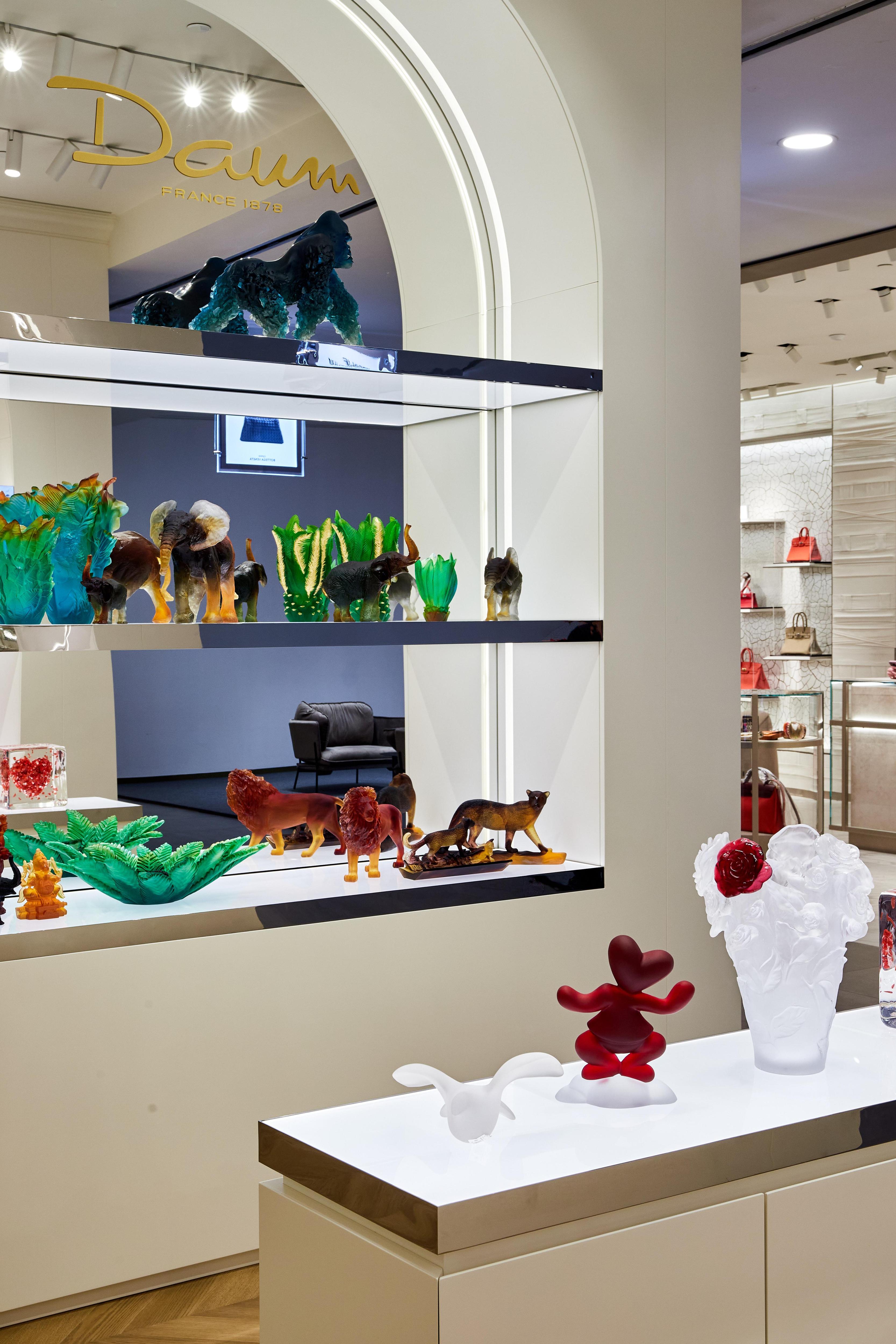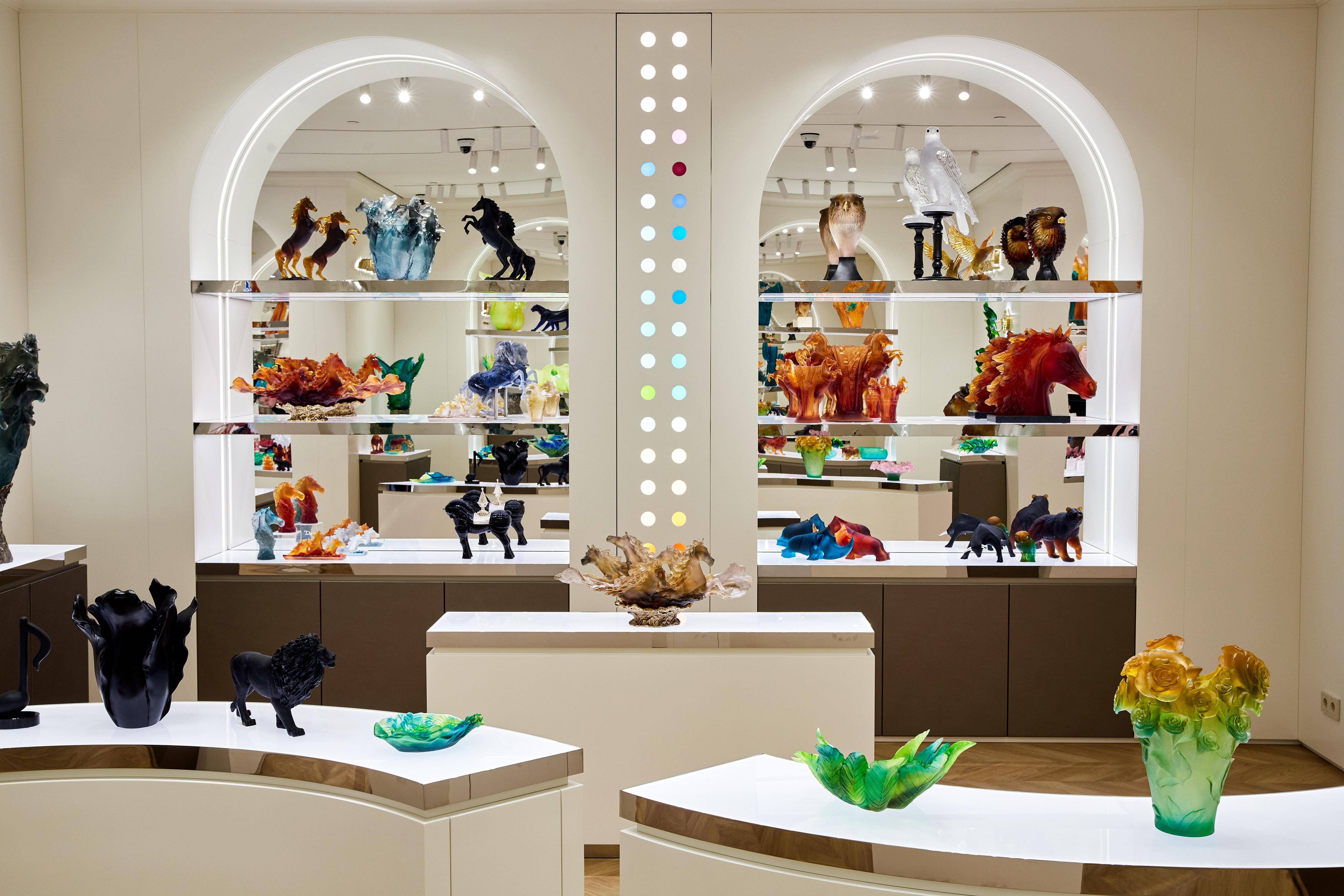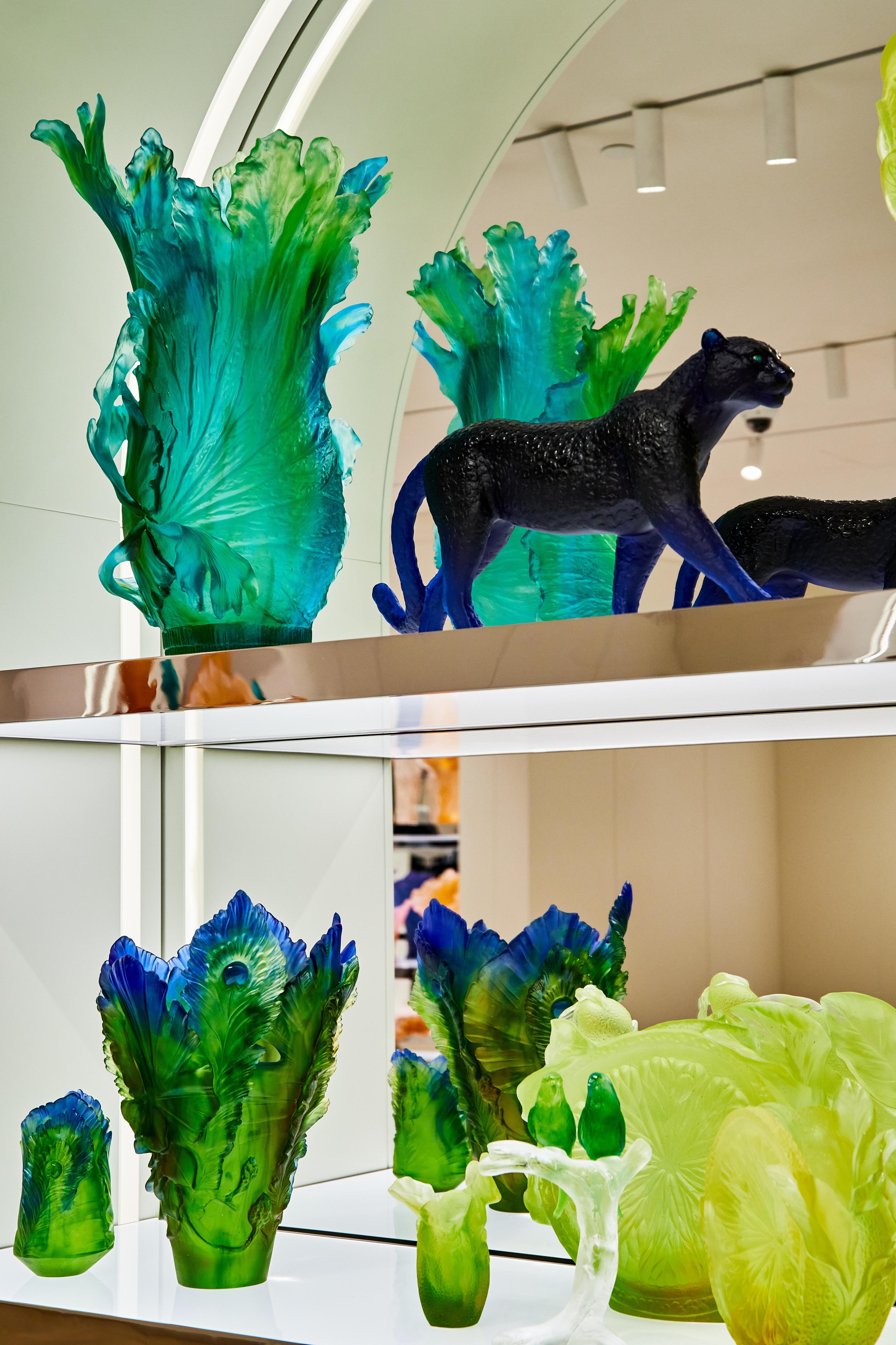 В новом корнере в ЦУМе собраны знаковые коллекции и работы известных мастеров: серии цветного стекла и хрусталя c цветочными и анималистическими мотивами Cavalcade, Tulipe, Amelie, Rêve Équestre, Safran, Сoral Sea, Douce Muse, Fleur De Paon Exotique, Camelia, Jardin De Cactus. Есть там и коллаборации с такими мастерами, как Ален Шуане, Натали Сеген, Бенджамин Фабрис, Мари-Поль Девилль Шабролль.